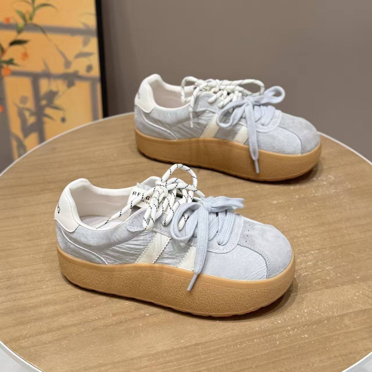 爆款复古德训鞋女2026春季新款超火松糕摇摇鞋拼色平底休闲板鞋潮