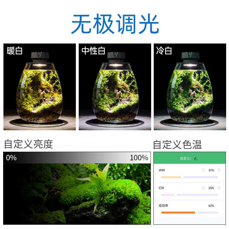 威尔康Mini7Pro-O景观瓶灯全光谱COB调光定时微景观水草灯