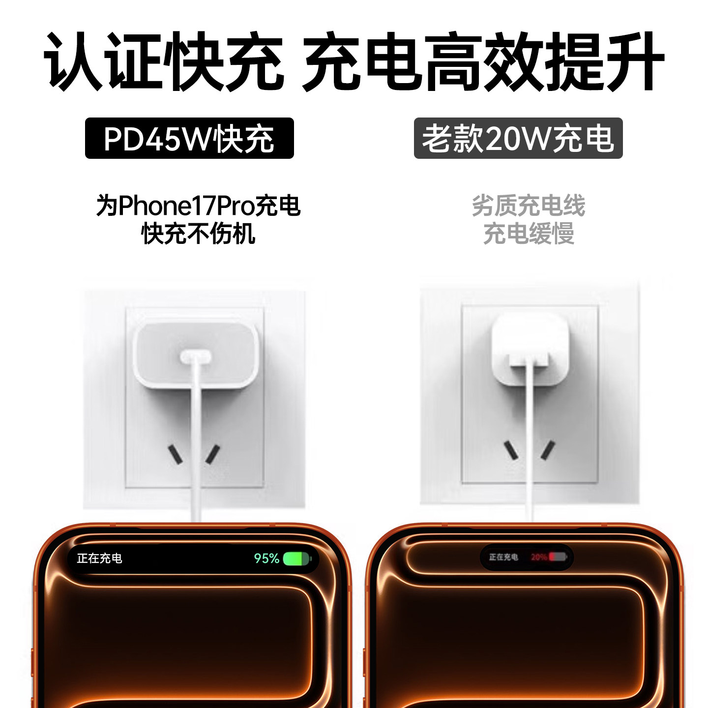 卓科曼适用于苹果17充电器PD45W快充iPhone16promax手机15pro插头13快充30w数据线14原装正品typec充电头套装