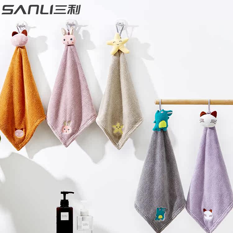 三利挂式擦手巾四方毛巾比纯棉吸水速干可爱家用厨房搽洗脸小方巾