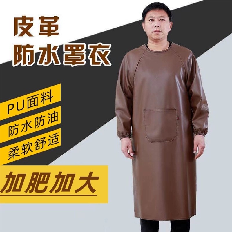 皮革罩衣围裙工作服防水加厚反穿衣大人男女劳保干活冬季黑色红色