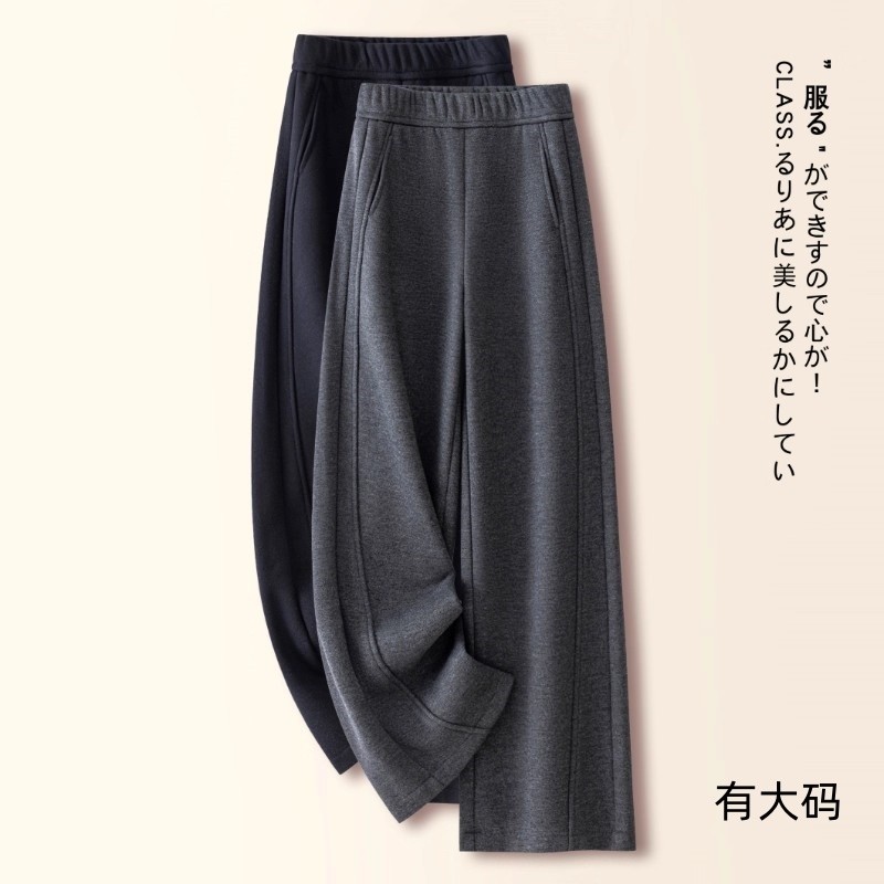 灰色阔腿裤女秋冬季2025新款毛呢糯米裤加绒休闲九分直筒裤子大码