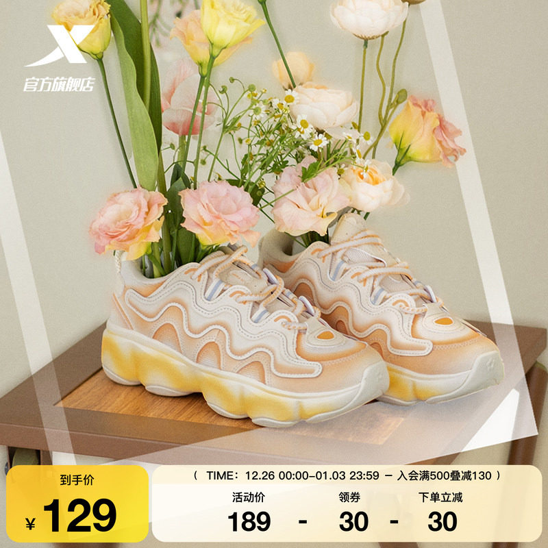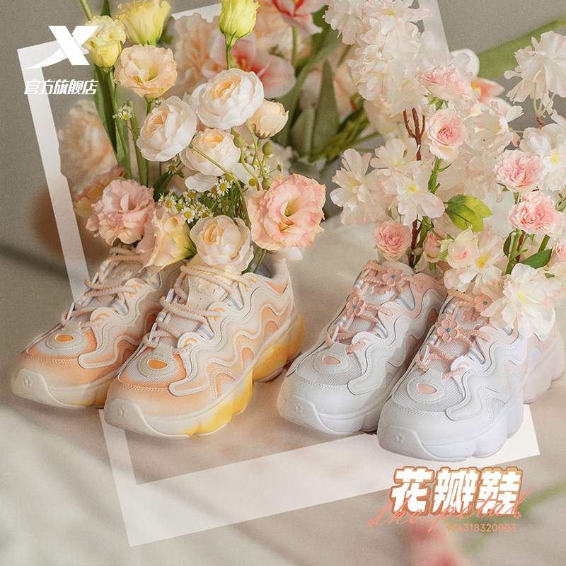 特步花瓣鞋休闲鞋冬季时尚百搭女鞋厚底增高轻便缓震运动鞋老爹鞋