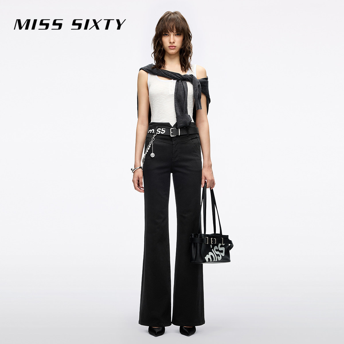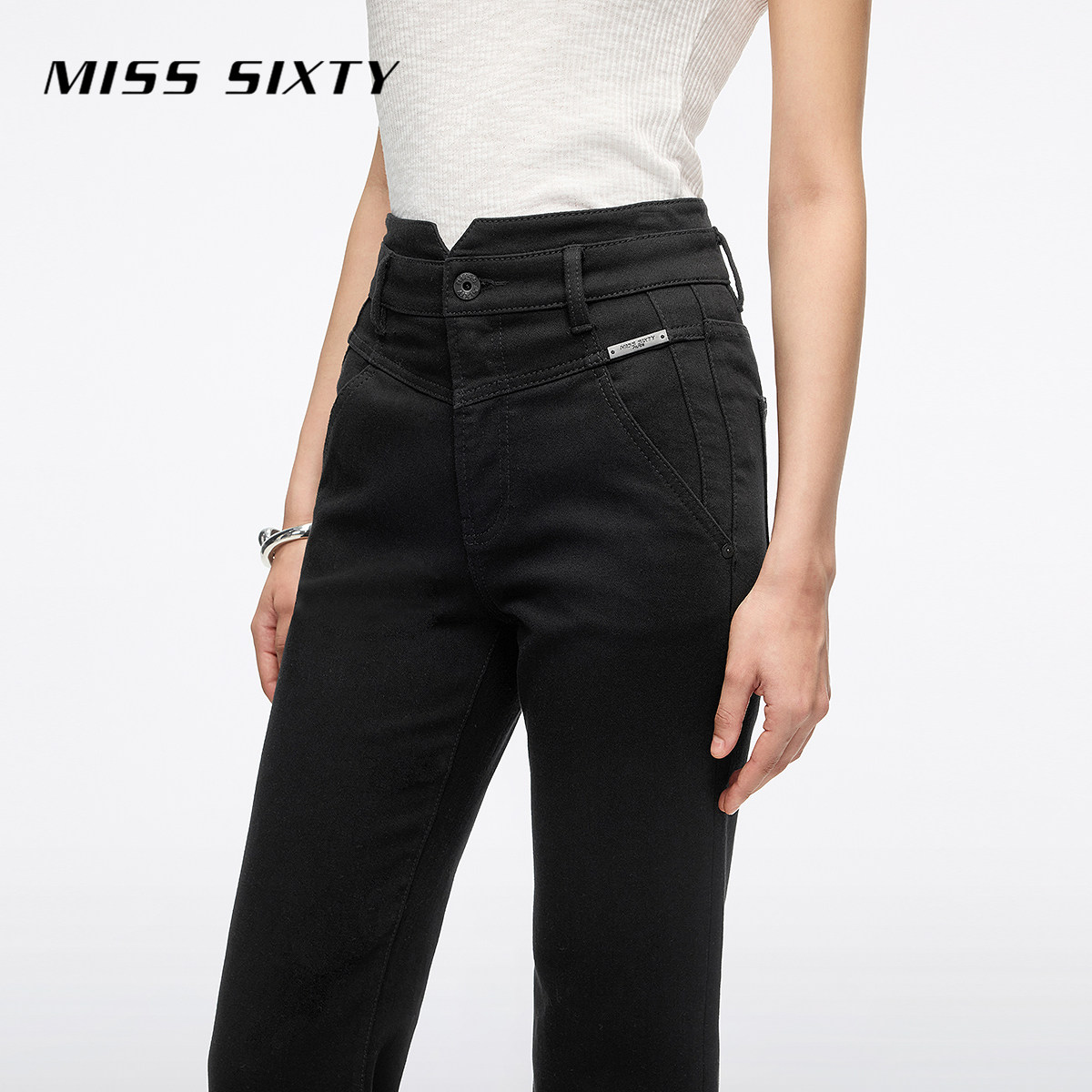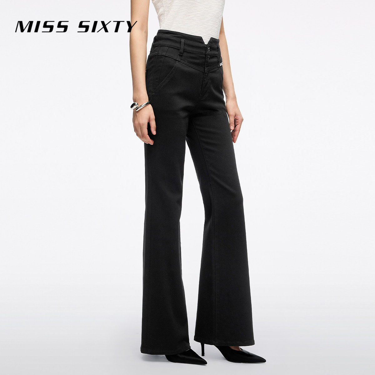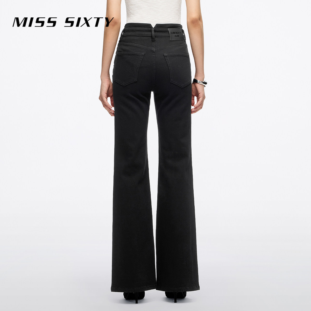 Miss Sixty2025秋季新款牛仔裤女高腰修身显瘦微喇叭裤小黑裤