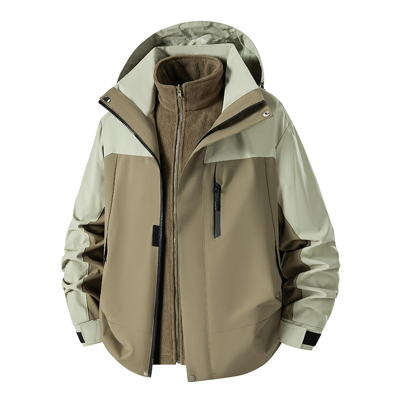 骆驼男装夹克春秋保暖三合一户外三防冲锋衣外套内胆防水徒步登山
