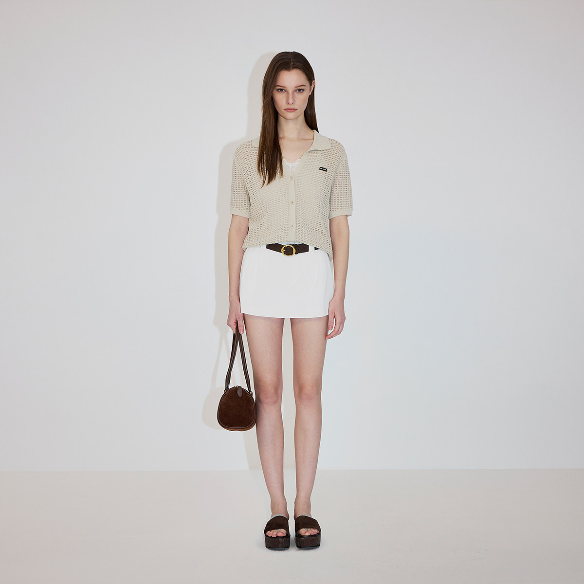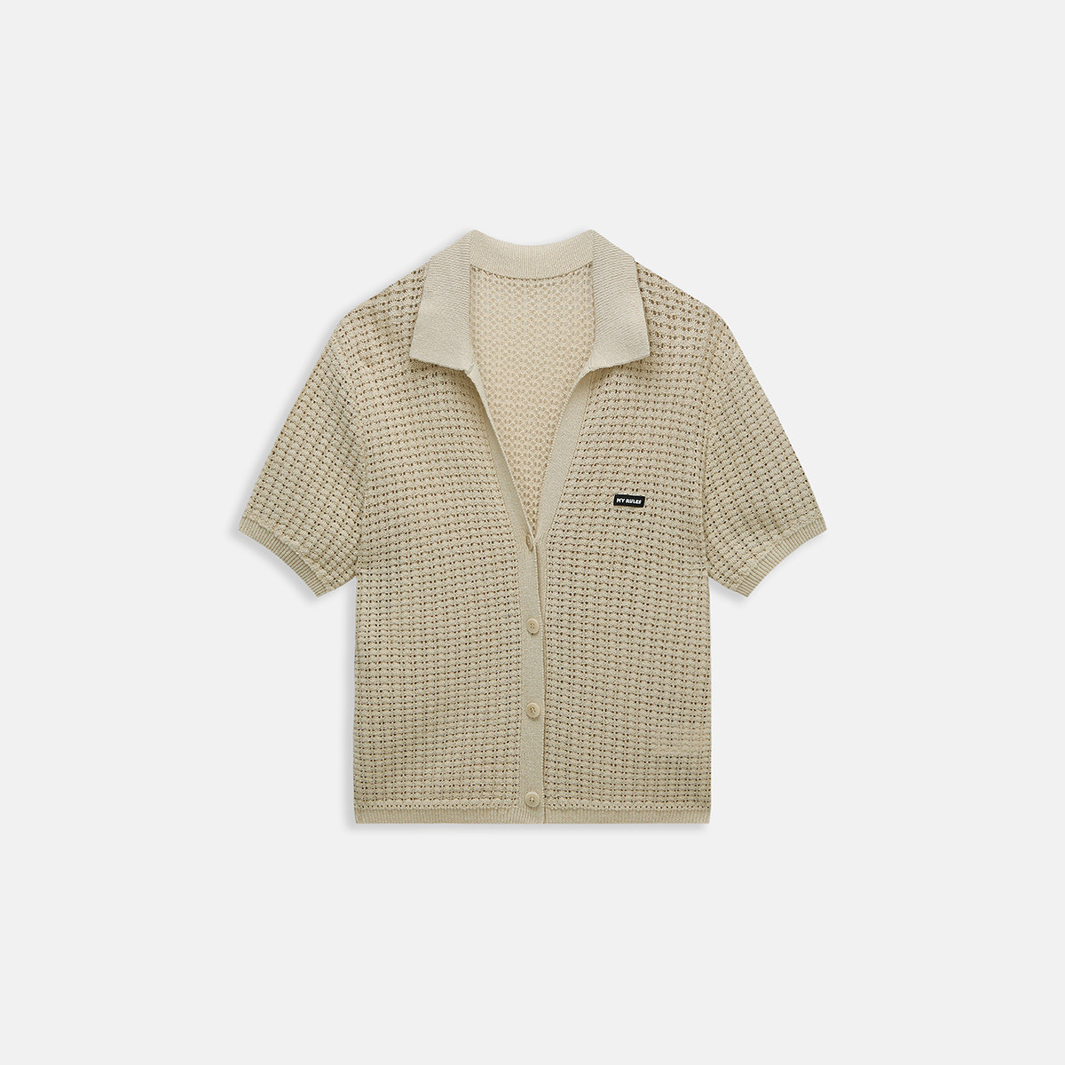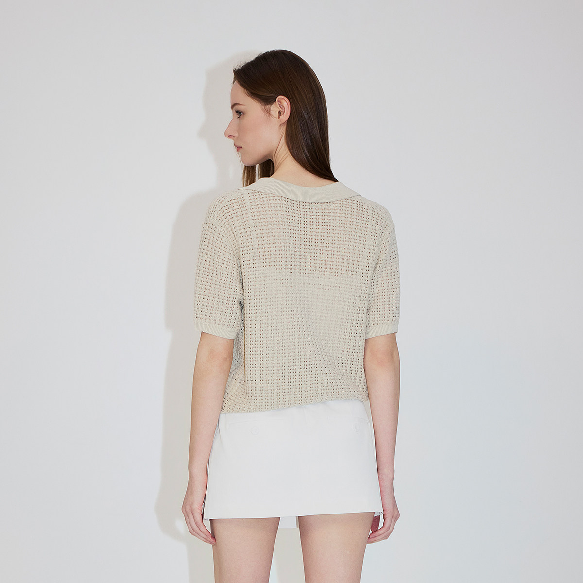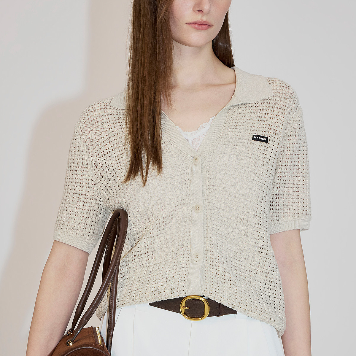 【新品】OCHIRLY欧时力 针织外套女2026春夏镂空编织半开翻领短袖