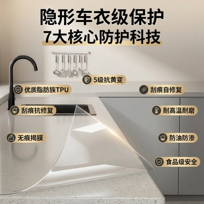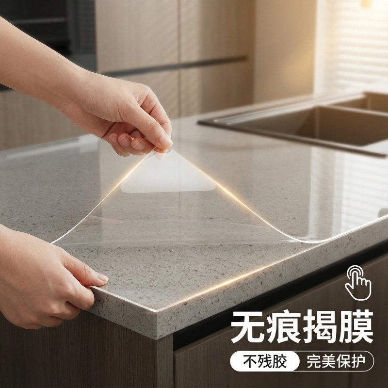 TPU灶台保护膜大理石岩板桌面透明自粘茶几石英石餐桌家具贴膜