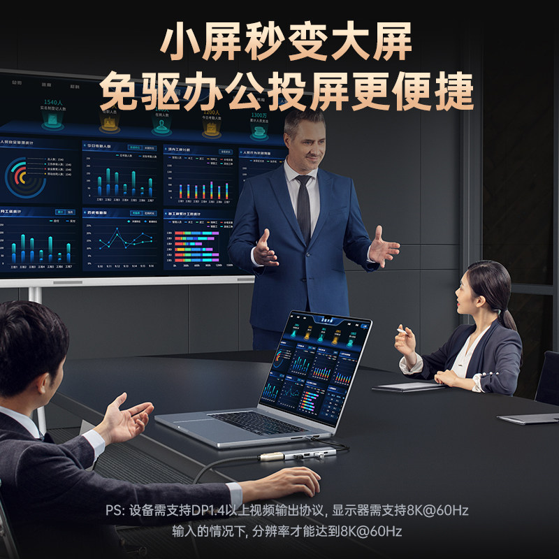 品胜typec转DP1.4拓展坞8K60Hz扩展坞投影仪高清投屏转接usb转换多功能接口适用华为苹果游戏笔记本电脑wh