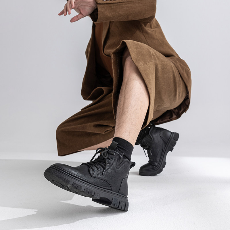 MRA米奇马丁靴男鞋中帮厚底德比鞋复古工装靴大黄靴圆头大头皮鞋