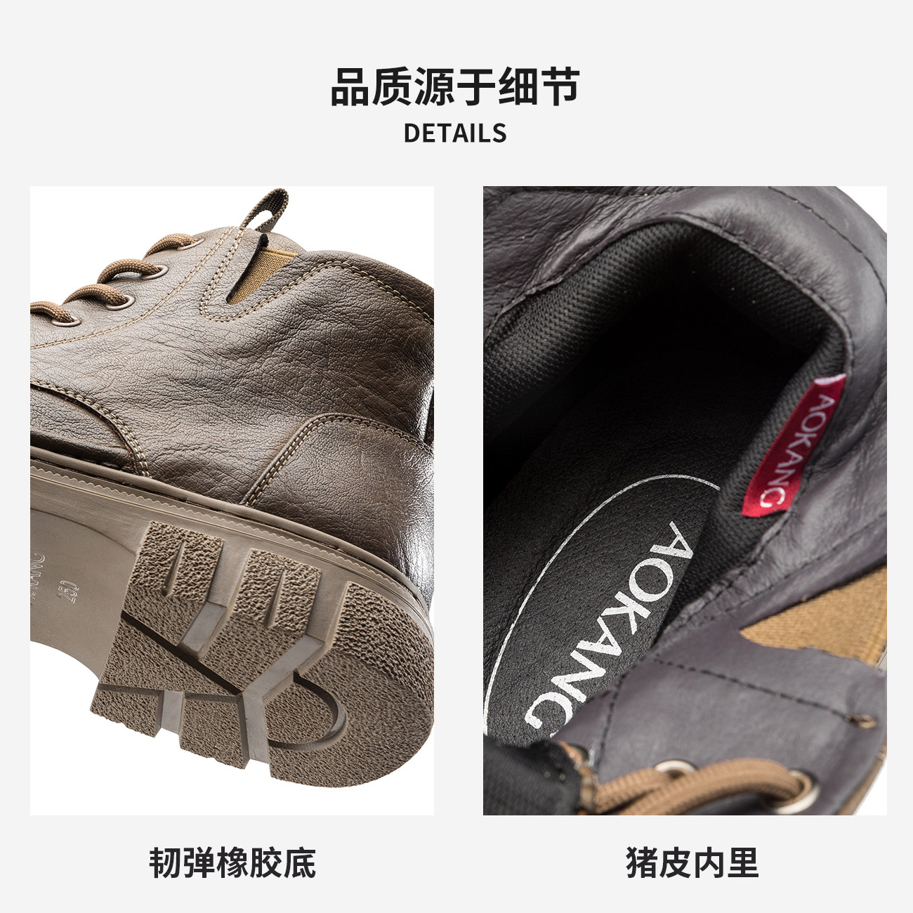 Aokang奥康秋冬季保暖户外马丁工装靴男休闲百搭加绒耐磨高帮鞋