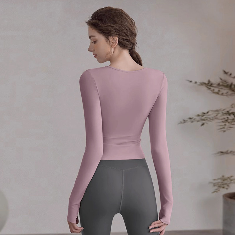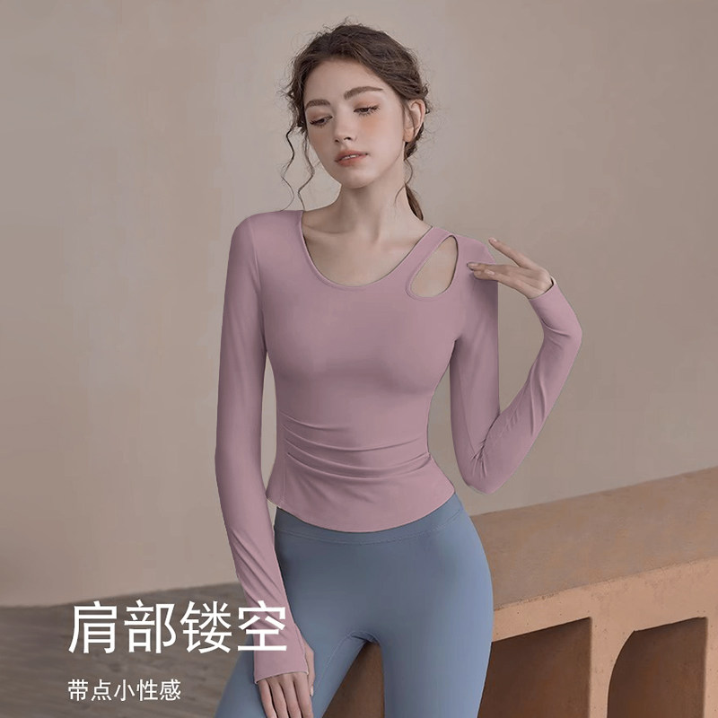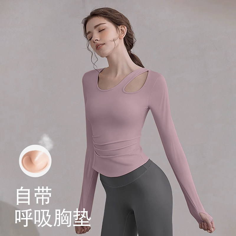 带胸垫瑜伽服上衣女绝美健身衣运动普拉提训练长袖新款T恤速干