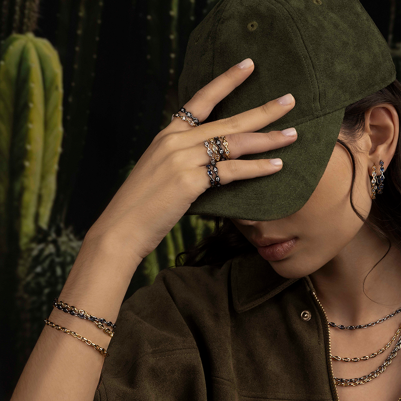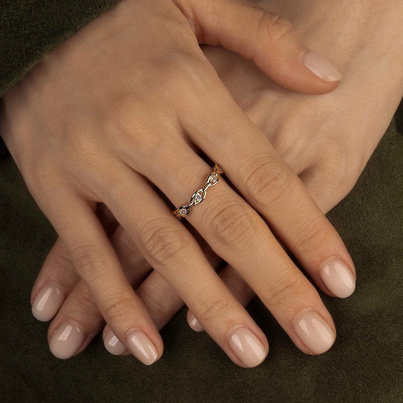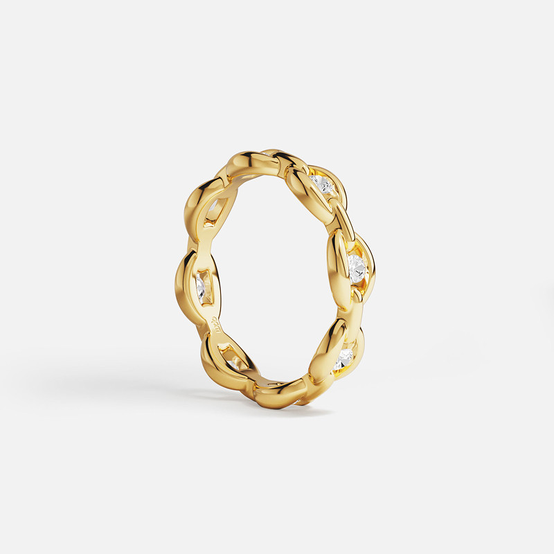 APM Monaco金黄色密镶链环戒指情侣对戒浪漫手饰送人生日新年礼物