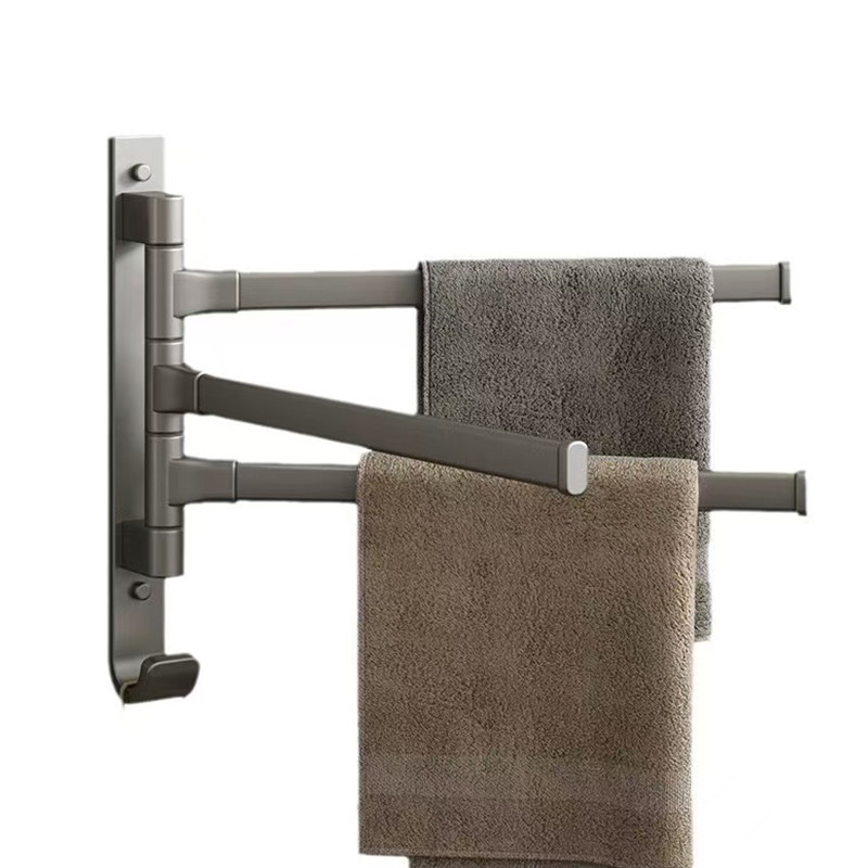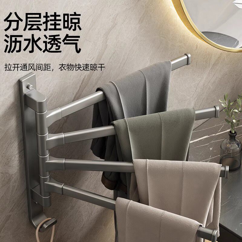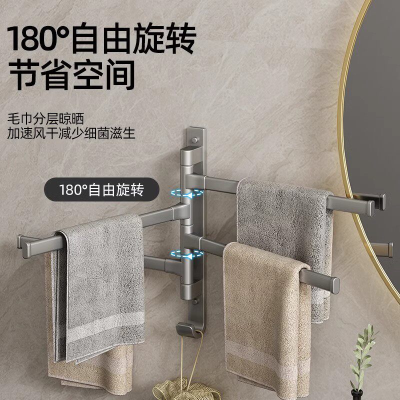 旋转毛巾挂杆架卫生间浴巾收纳挂架浴室转角免打孔太空铝吸盘置物