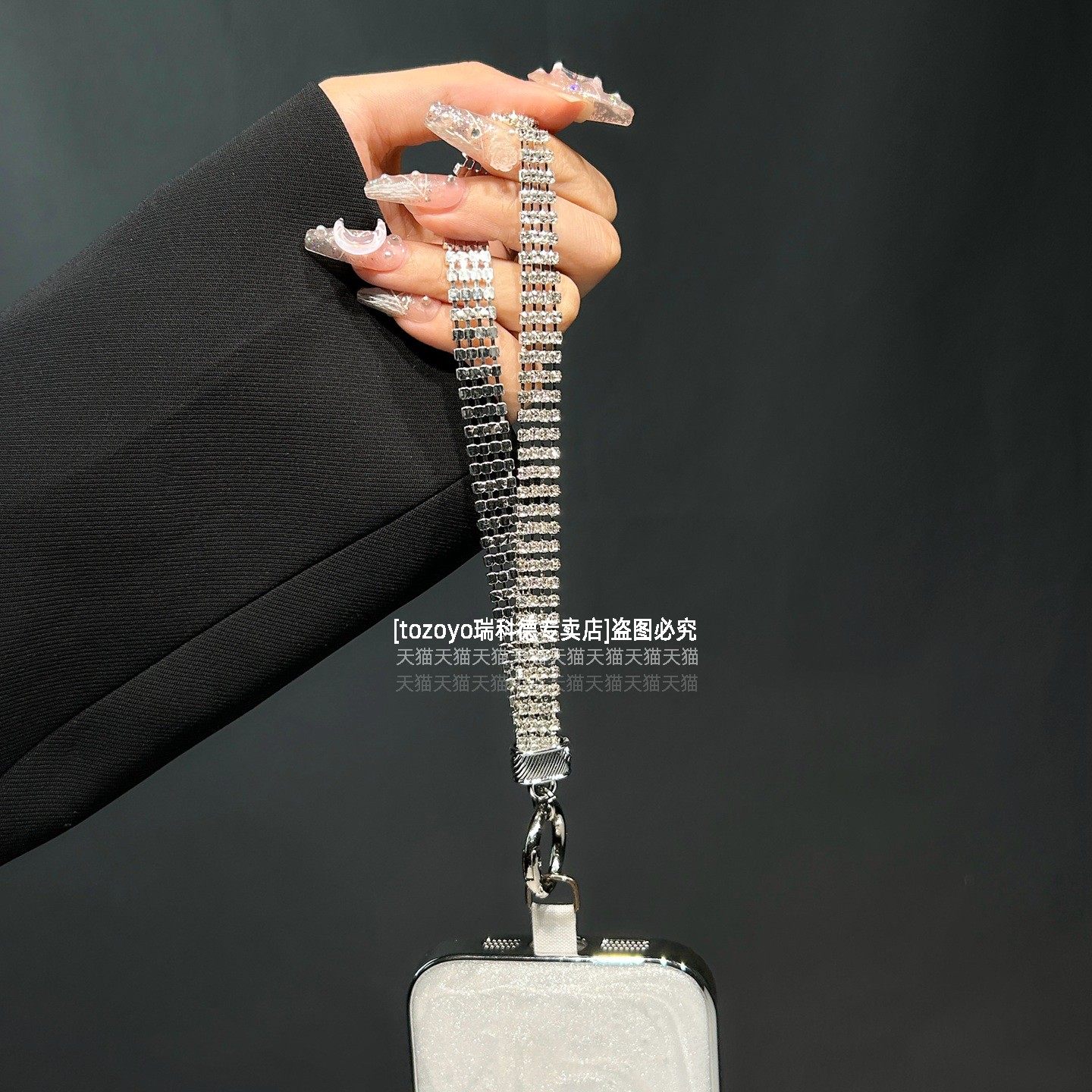 重工手作满钻手机链原创自制奢华水钻手链小众宽版设计感挂链金属镶钻链条超闪腕带防丢高档挂饰包挂件垫片壳