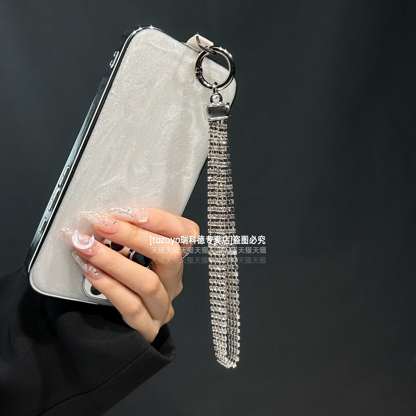 奢华高级感水晶手提链条手腕短挂绳带夹片壳钥匙扣包包挂件潮