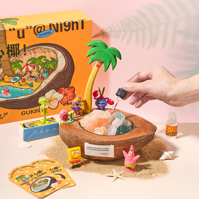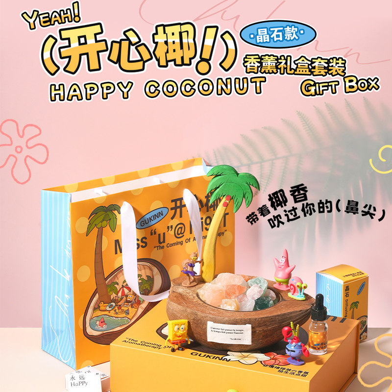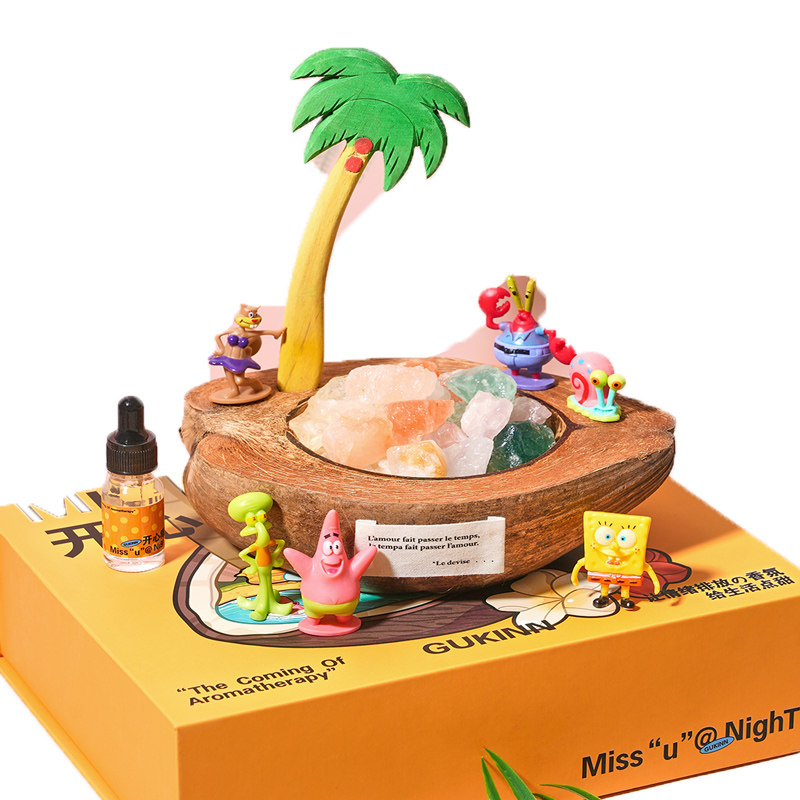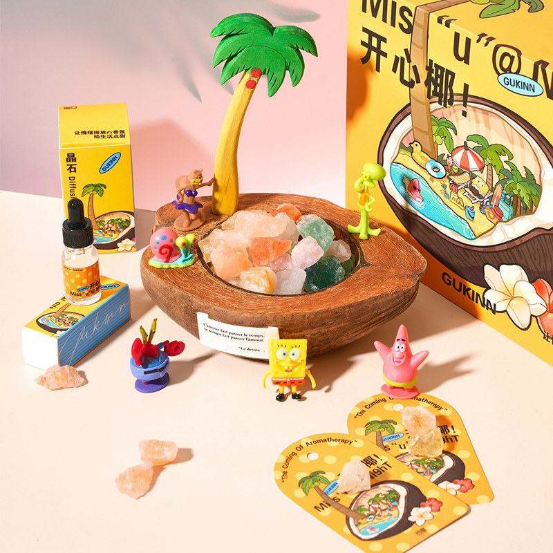 海绵家族开心椰晶石香薰高级礼盒生日礼物卡通摆件送男女生孩子