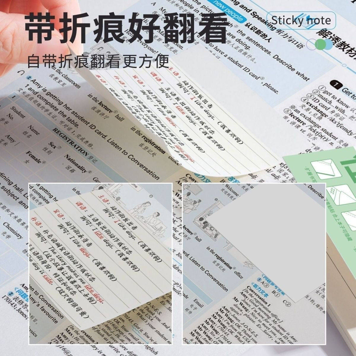 任意扩张贴便利贴不遮挡文字透明可折叠考研小学生用可撕有粘性便签贴纸初高中生记笔记贴订正错题办公便利贴