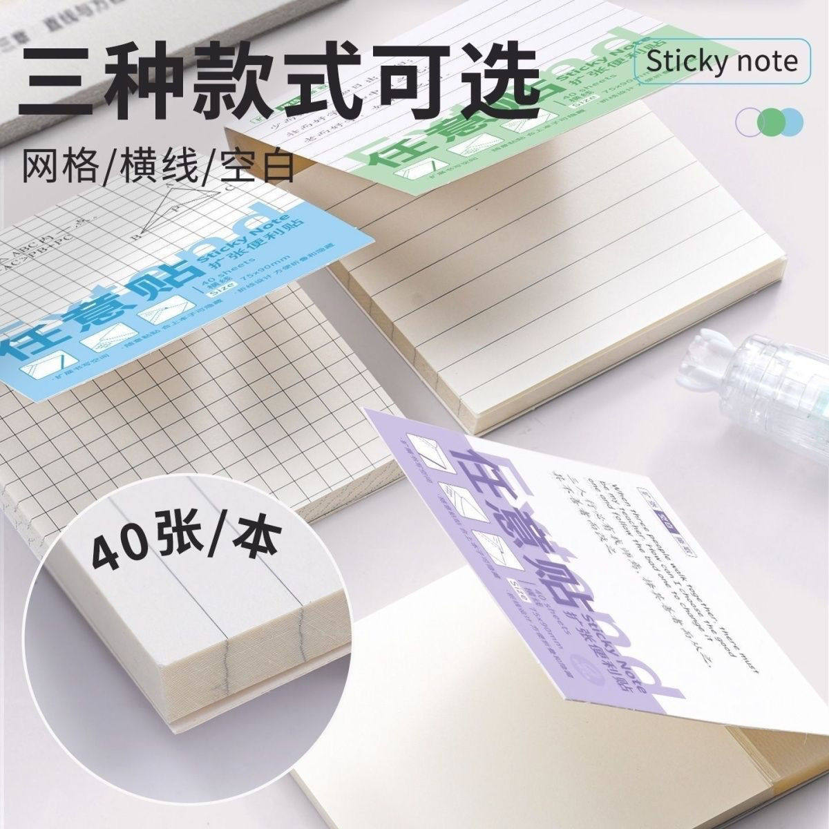 可撕任意贴扩张便利贴学生笔记错题贴初中生专用有粘性便签贴纸本横线空白网格小学生错题订正办公留言备忘录