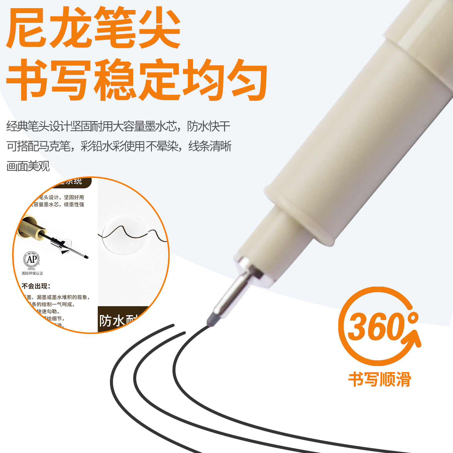 mobee针管笔美术专用小学生防水勾线笔手柔绘笔画笔画图漫画描边绘画彩色黑笔设计绘图幼儿园儿童速写细头笔