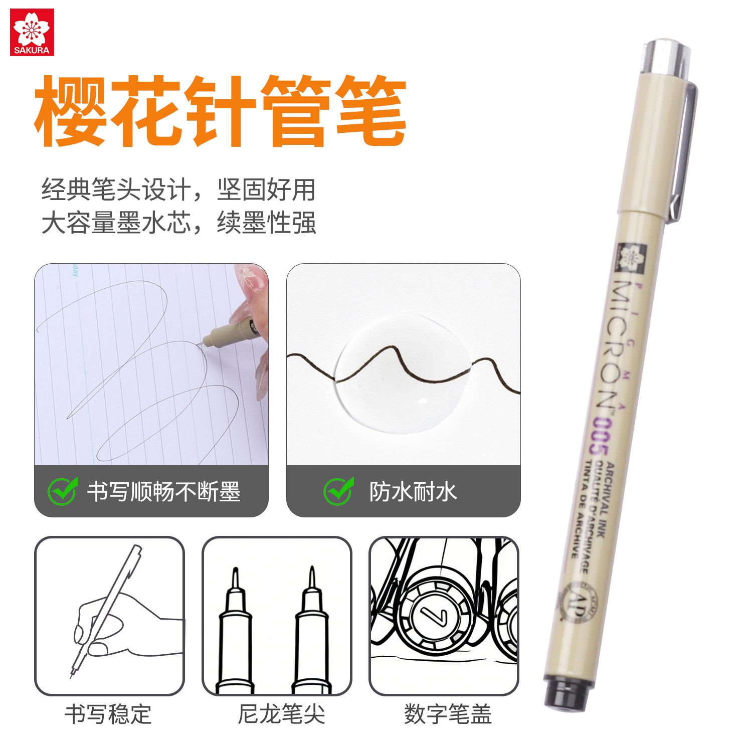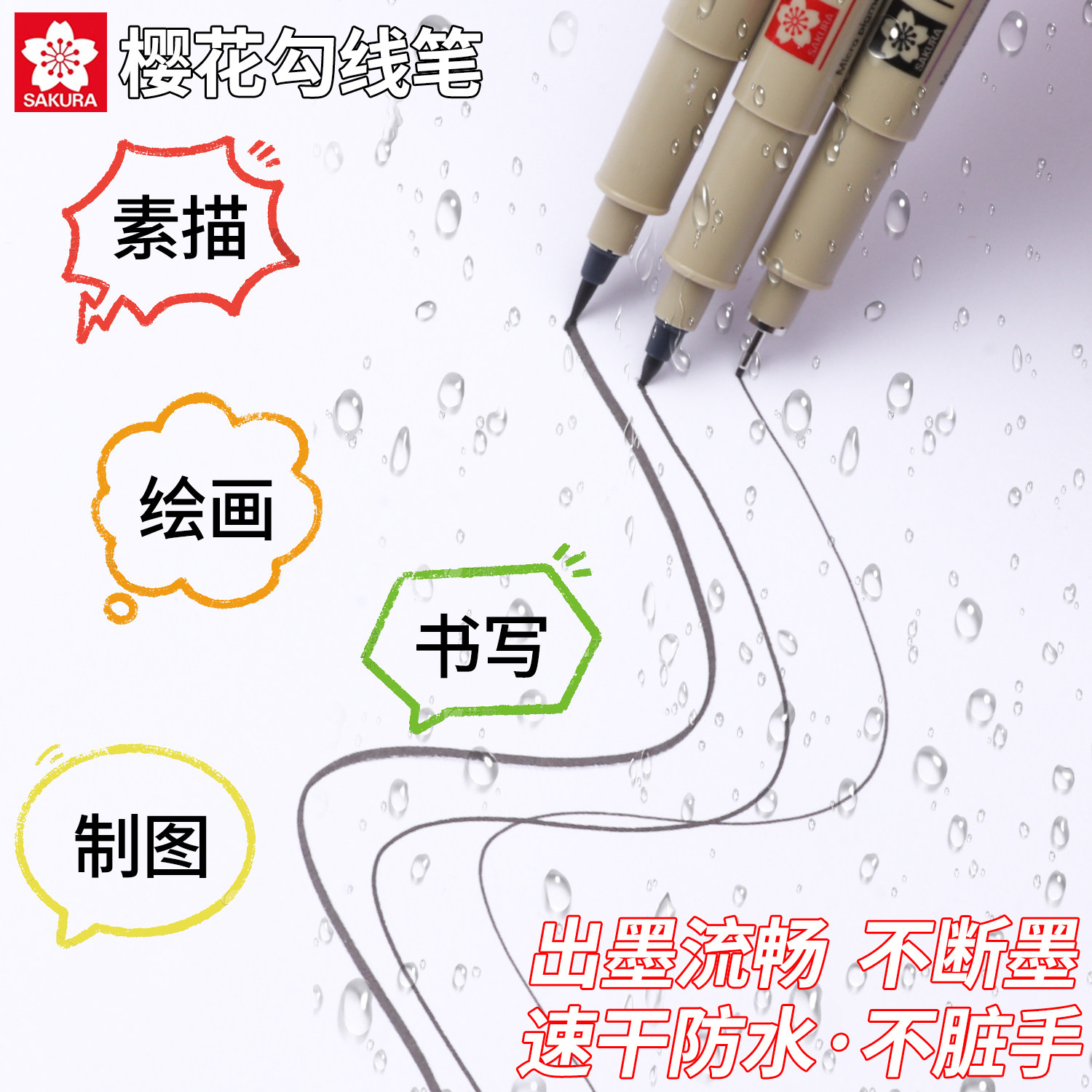 日本樱花针管笔学生用美术防水套装漫画笔设计手绘动漫笔绘图黑色0.5mm彩色樱花笔樱花勾线笔禅绕画专用笔
