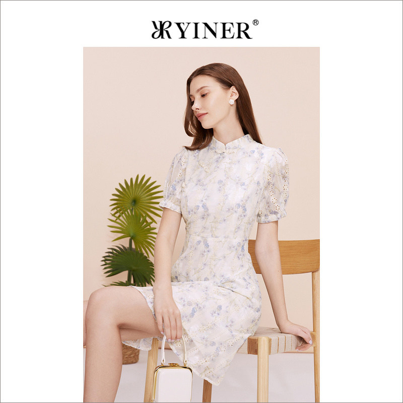 YINER音儿专选女装夏季摩登新中式旗袍式国风连衣裙