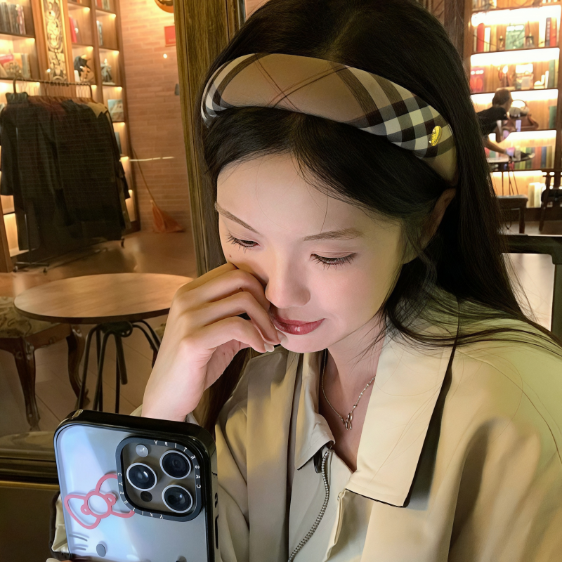 复古女格纹百搭发箍2026年新款高颜值宽边布艺高颅顶压发外戴头箍