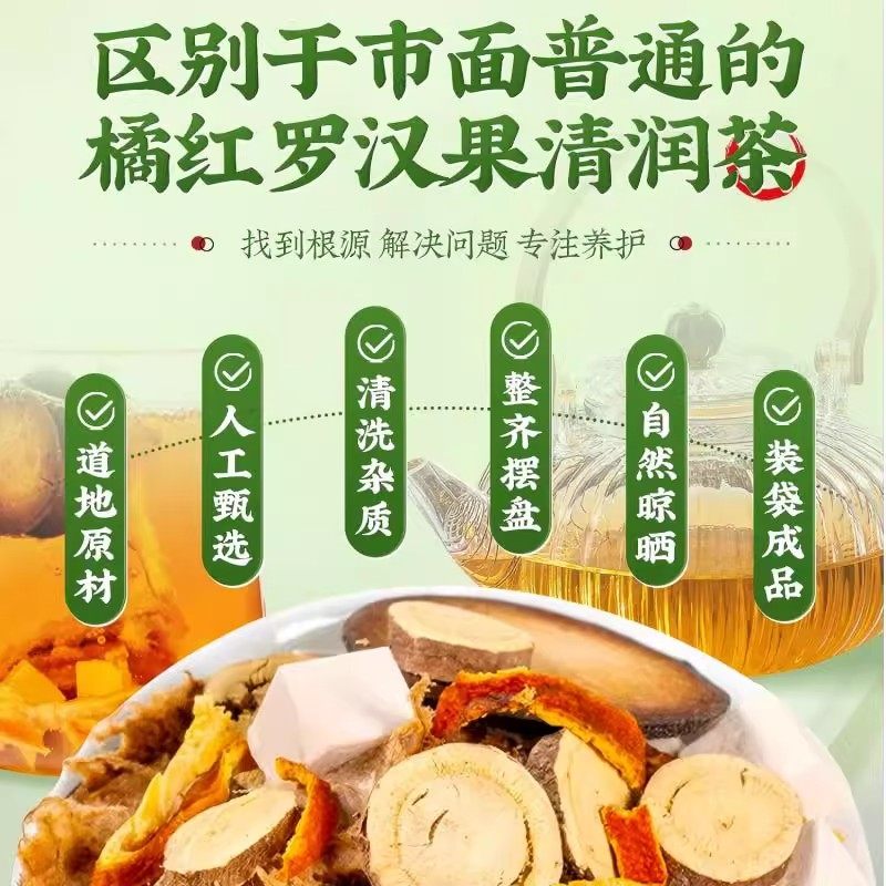 橘红罗汉果雪梨清润茶茯苓清肺润肺护嗓润喉养生茶独立包装胖大海