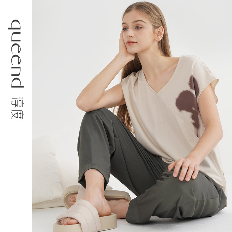 淳度麻感单孔布睡衣女夏款新款短裤长裤可外穿家居服套装薄款