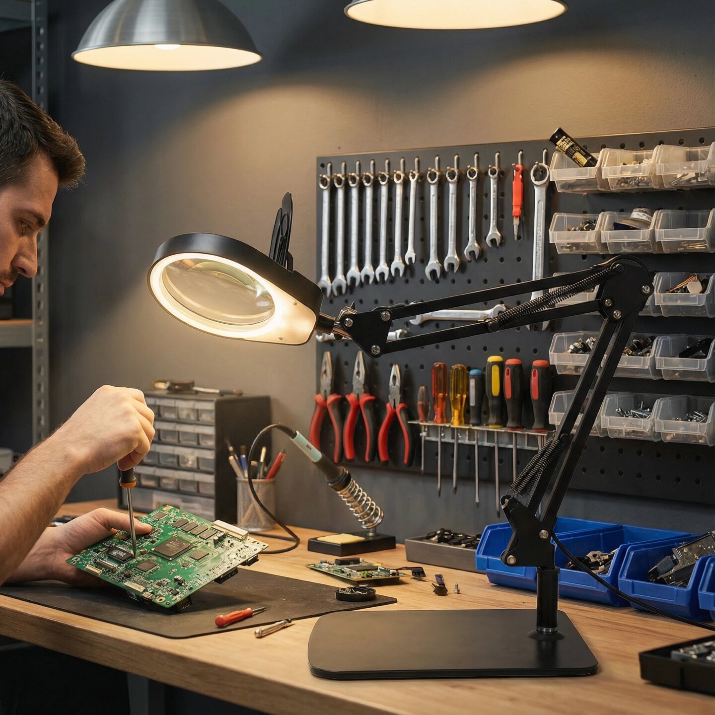 PDOK夹台式两用放大镜带灯PD9S-2线路板维修焊接阅读台灯高清40倍