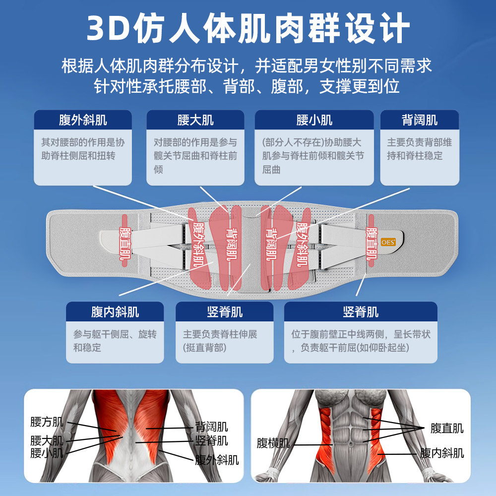 OES护腰带腰椎腰间盘男女士专用久坐久站神器加热腰痛保暖带突出