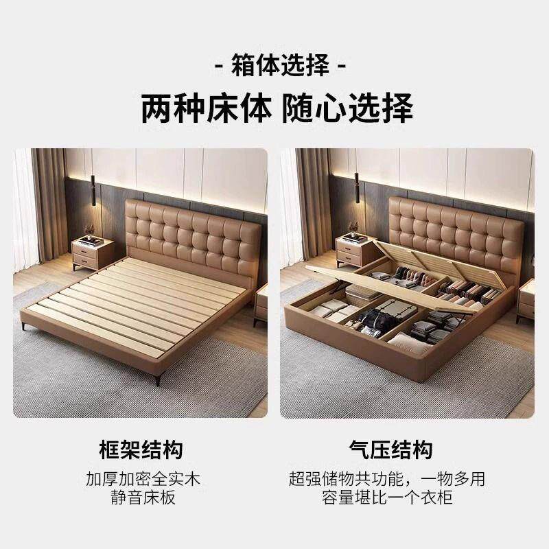 意式黑色极简现代皮艺床轻奢双人大床高端大气主卧1.8米双人婚床
