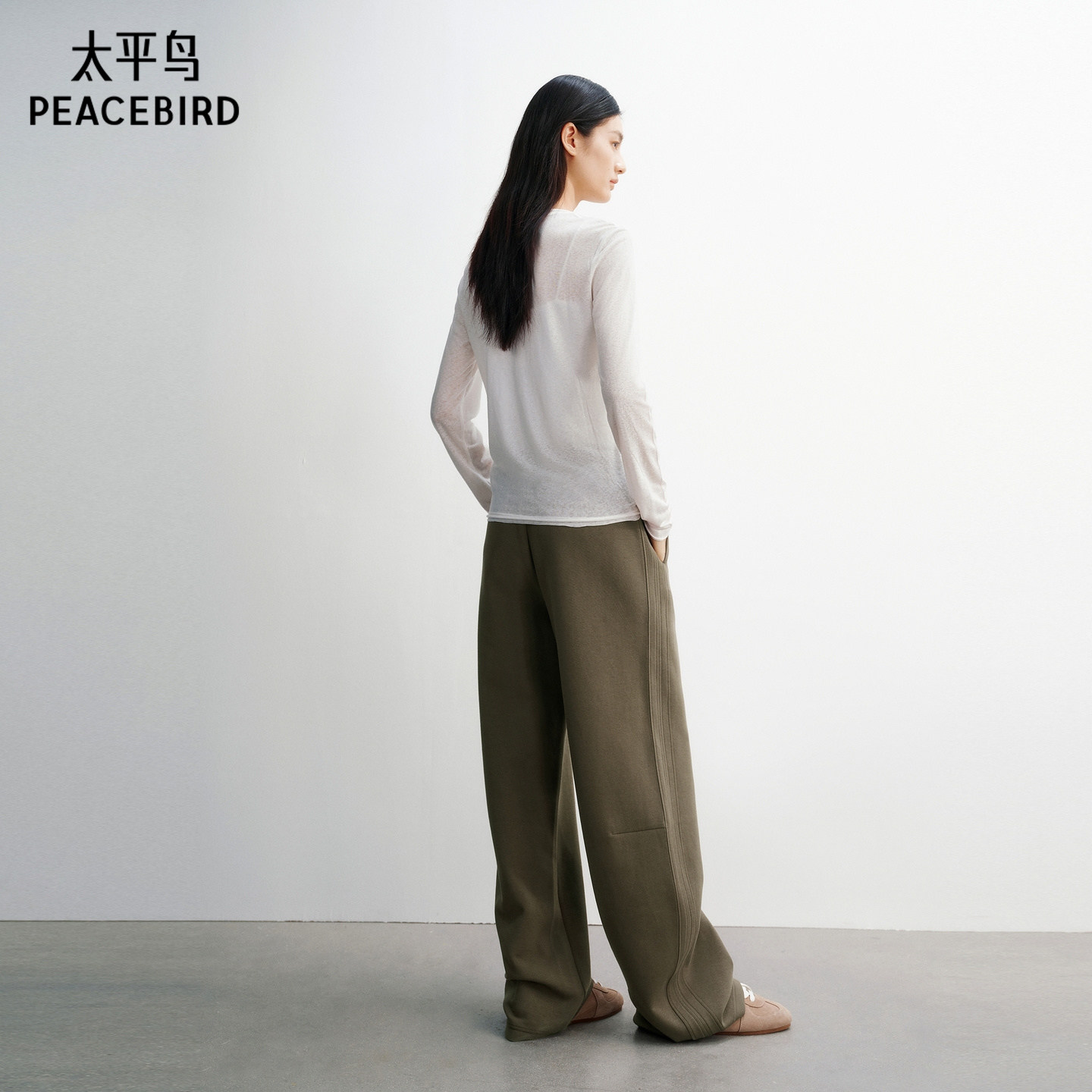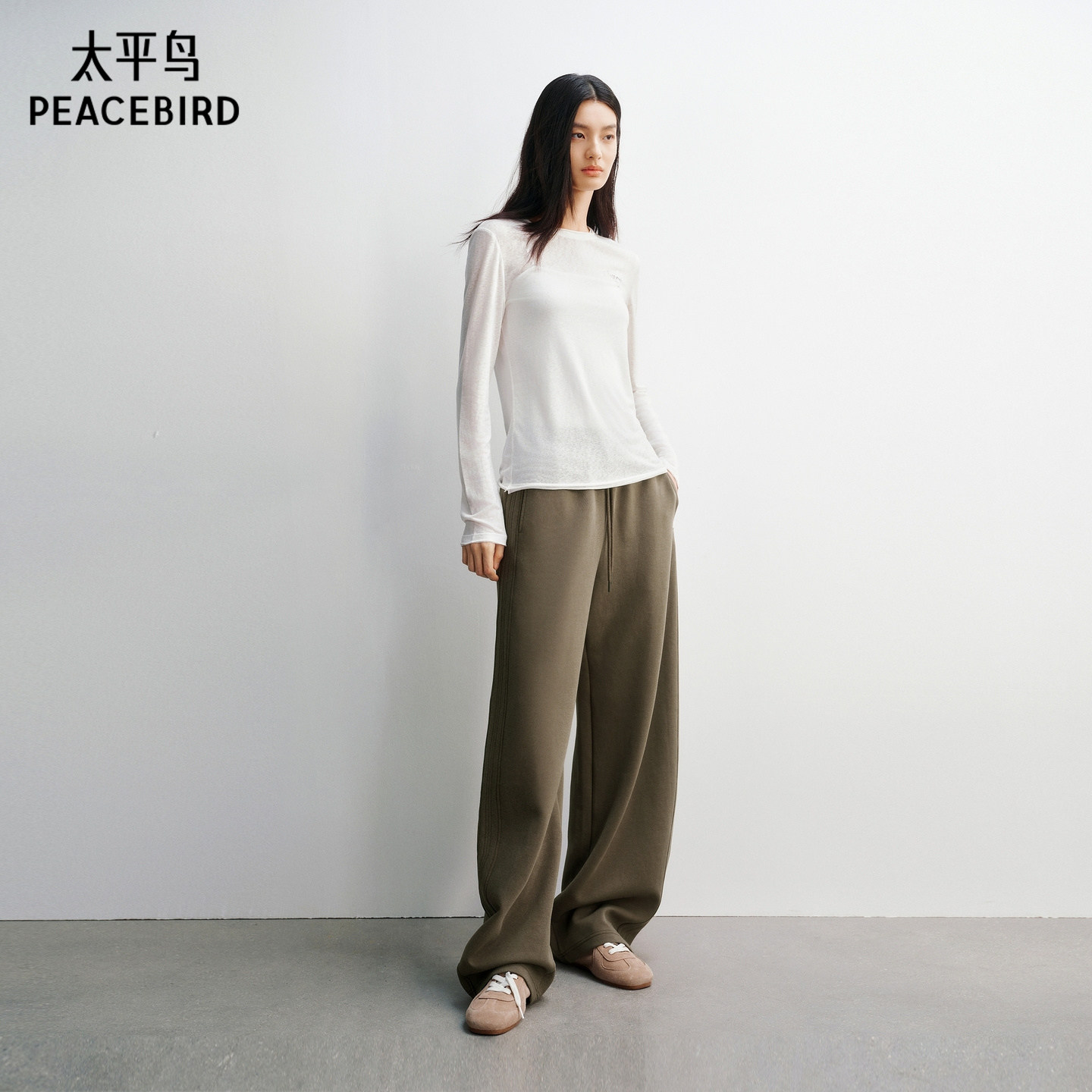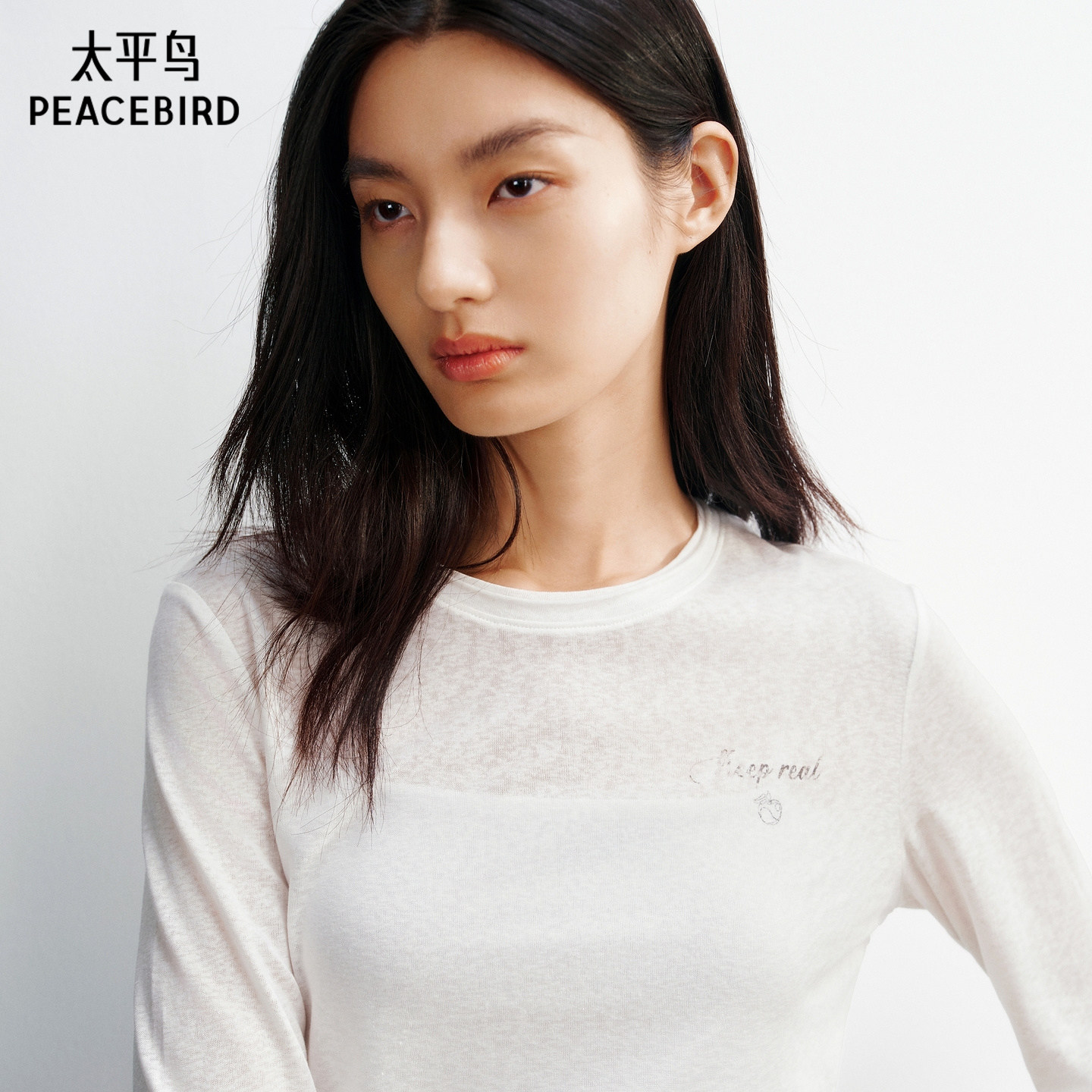 太平鸟 莱赛尔混纺裸感罩衫26春季新款字母印花合体皮肤衣长袖T恤