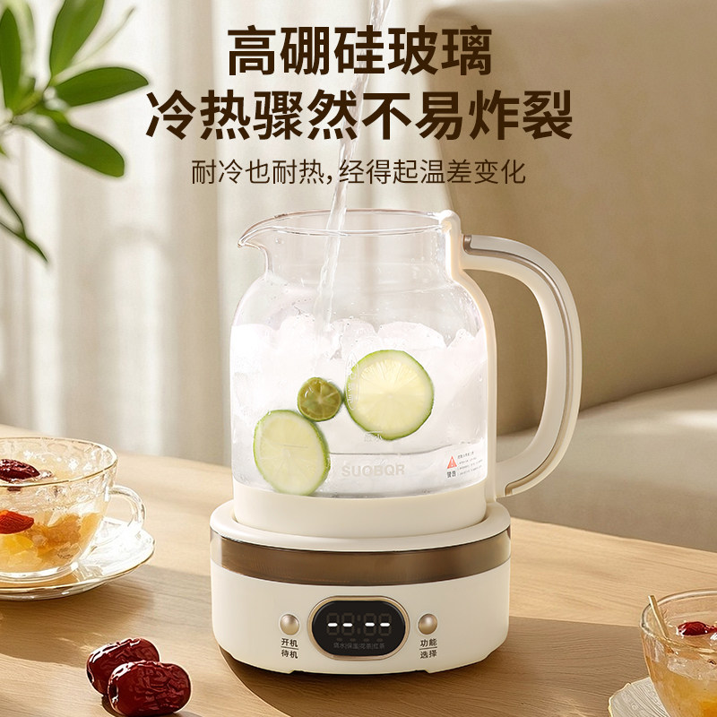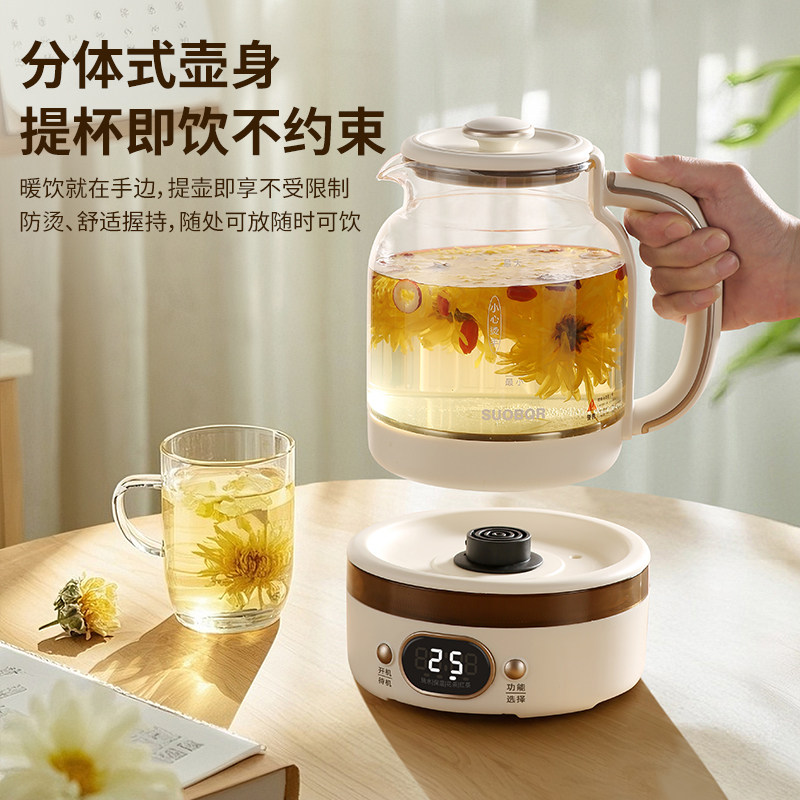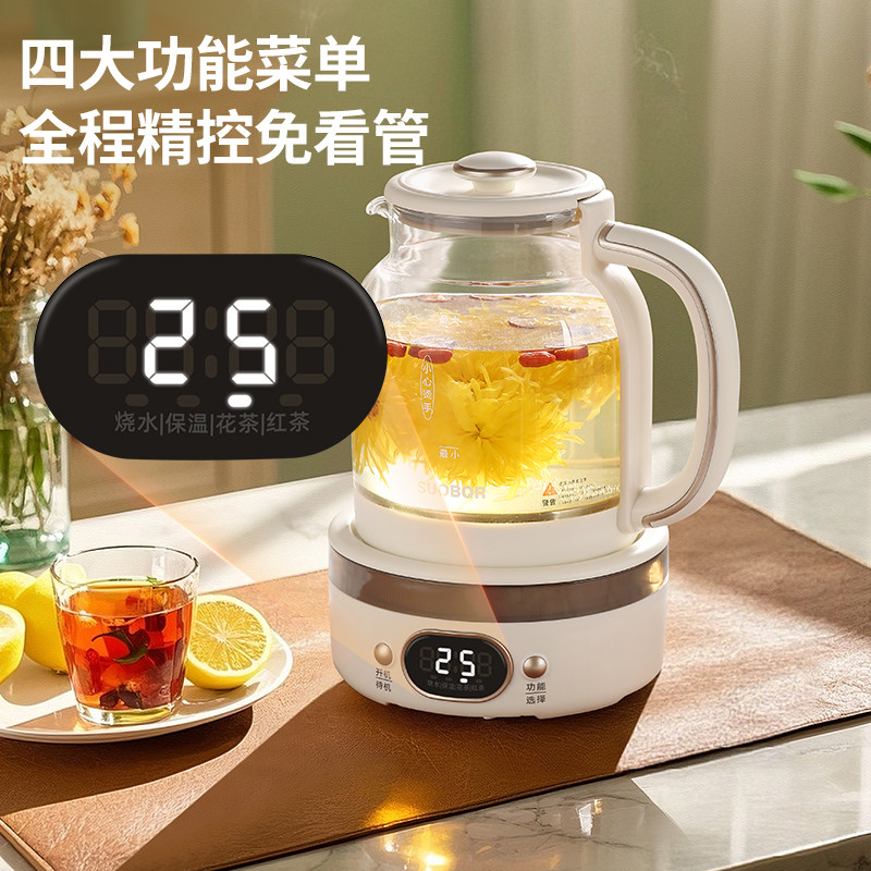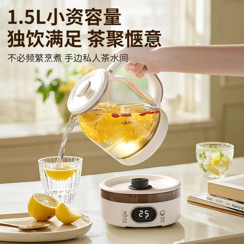 苏泊养生壶煮茶器炖煮一体2025新款办公室烧茶小型全玻璃电热水壶