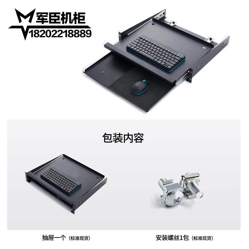 19英寸1U机柜键盘滑动抽屉伸缩双层键盘式抽屉隔板抽拉式机柜托盘