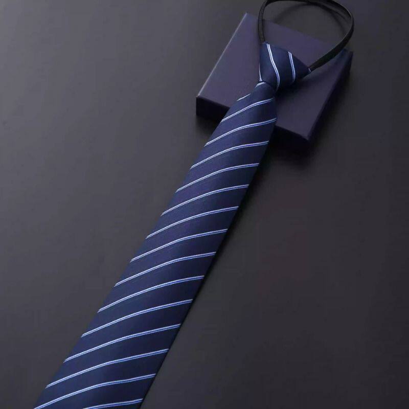 男士商务正装拉链领带新郎结婚蓝色条纹韩版黑色懒人领带一拉的