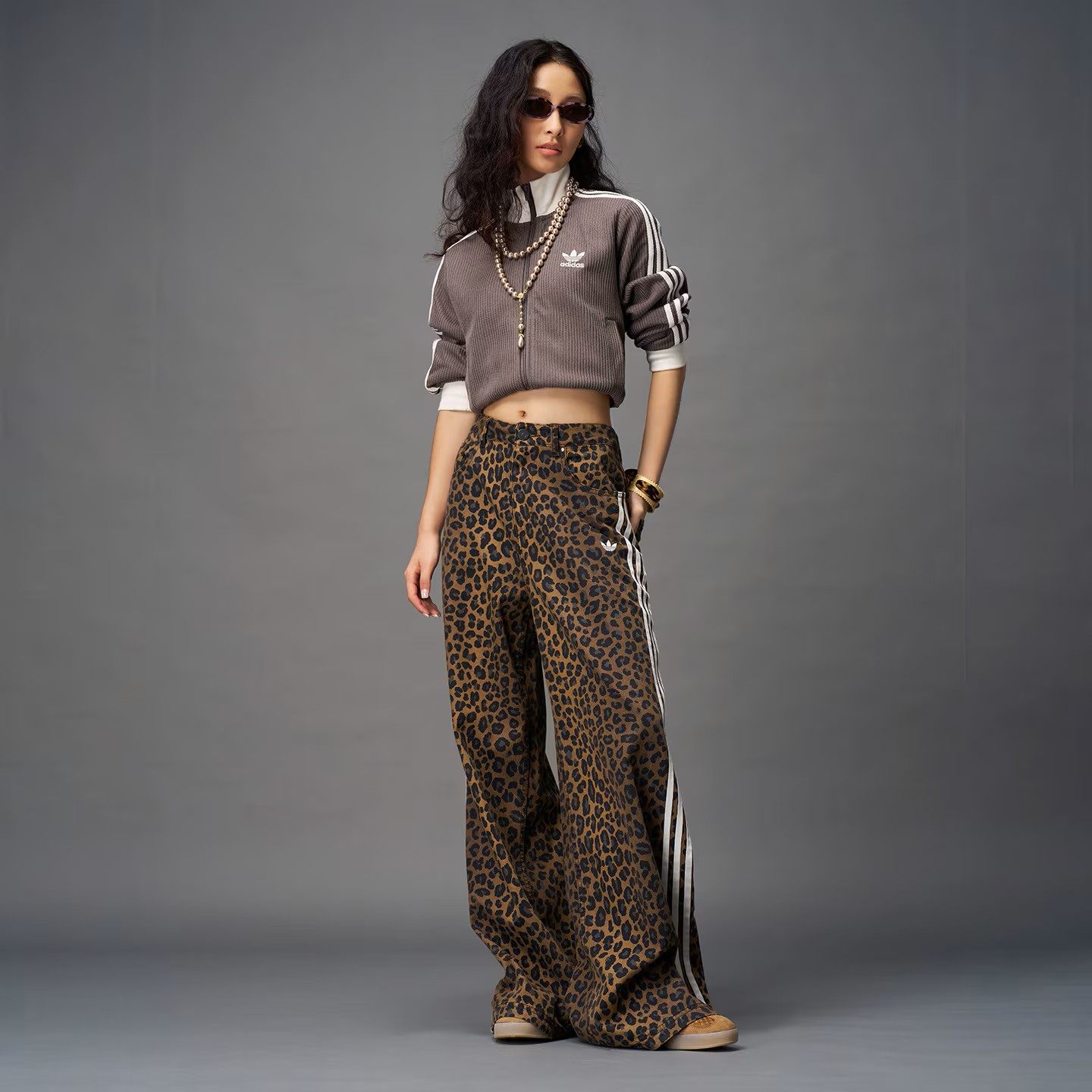 adidas阿迪达斯三叶草经典豹纹印花牛仔宽松运动裤女长裤 KA2680