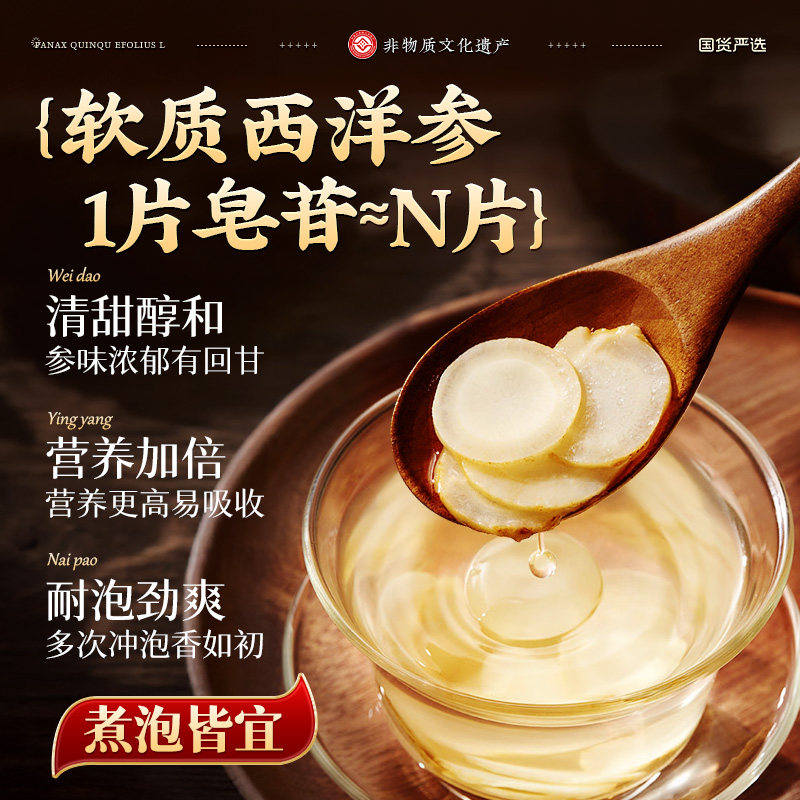 长白山西洋参切片特级泡水喝西洋参礼盒中药材花旗人参官方旗舰店