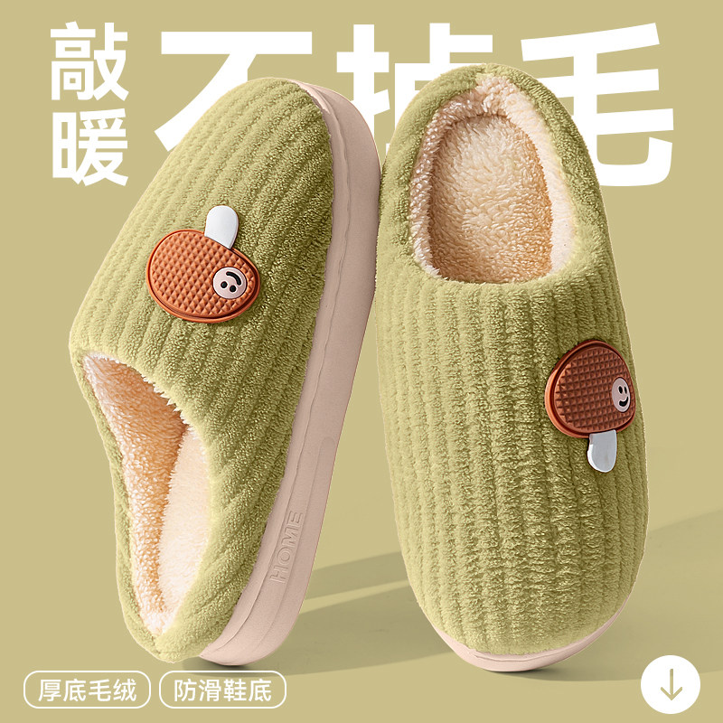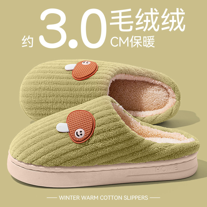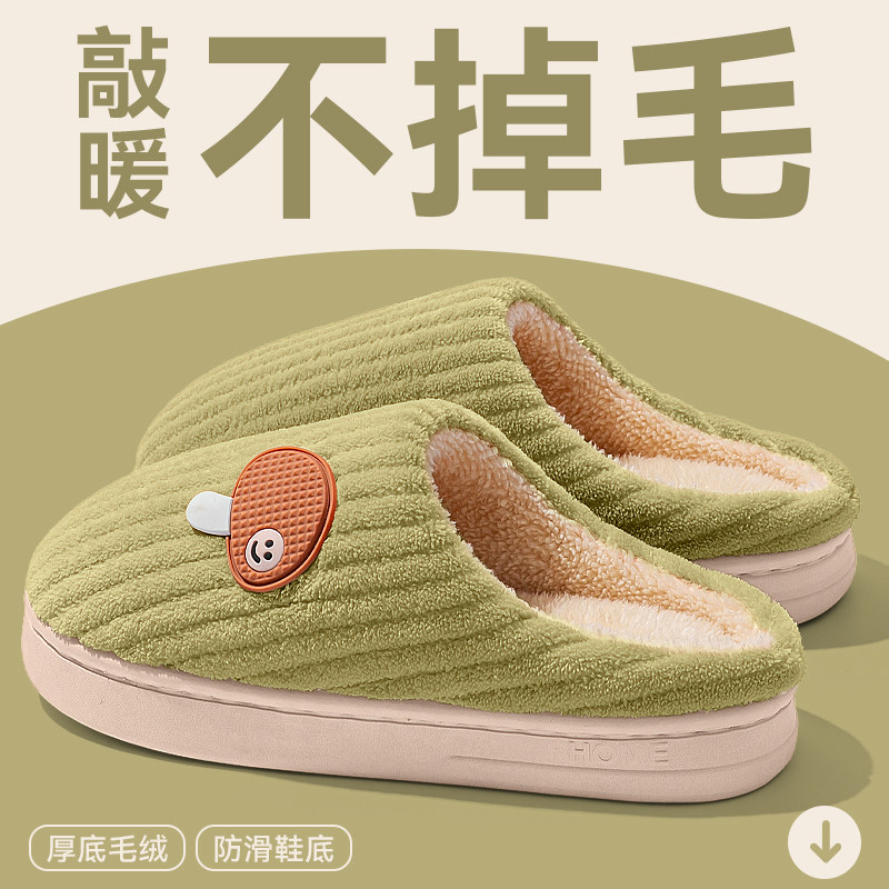 红豆踩屎感棉拖鞋女士秋冬季室内家居2025新款毛绒保暖情侣棉拖男