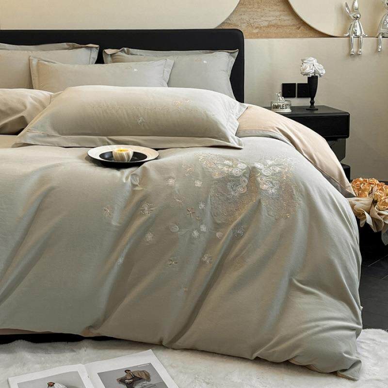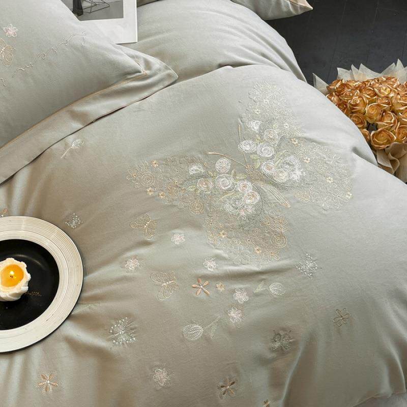 全棉磨毛刺绣工艺四件套蝴蝶款加厚床单被套秋冬保暖卧室套件