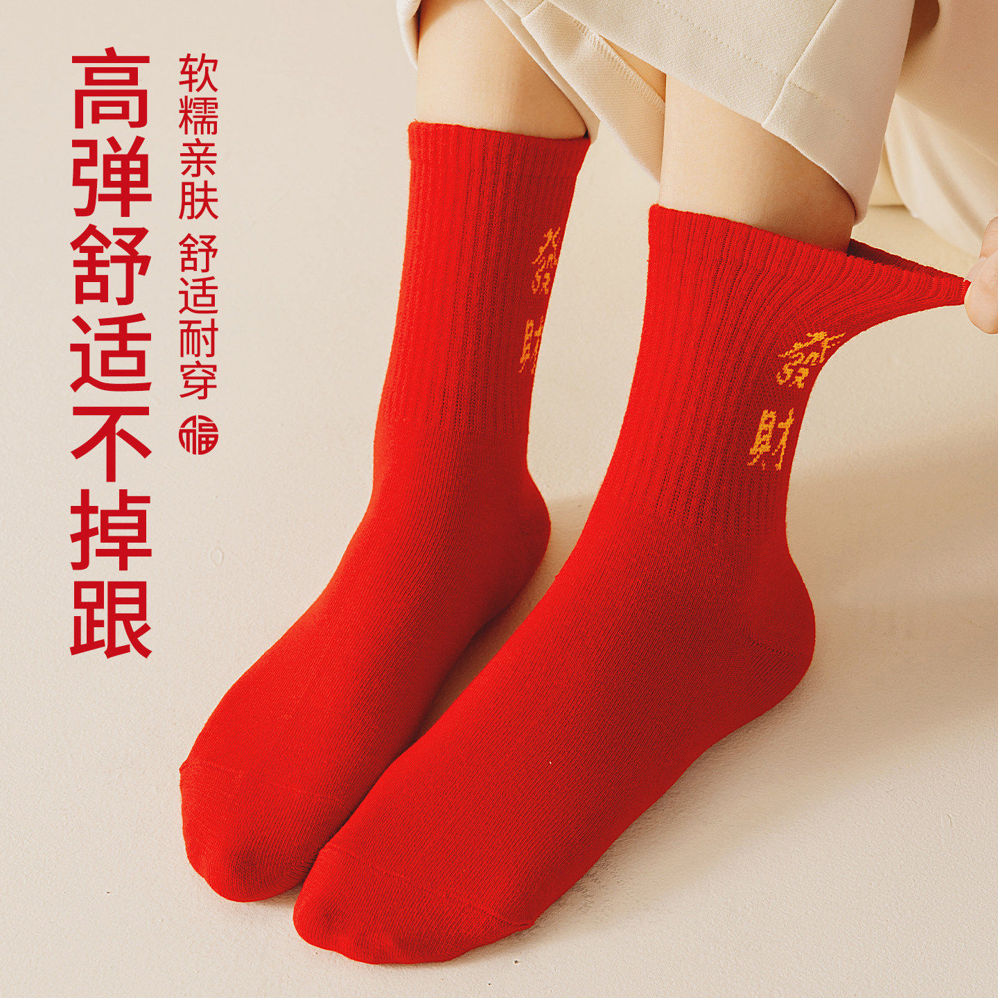 猫人本命年红色袜子小人图案2026马年结婚情侣一对男女款中筒棉袜
