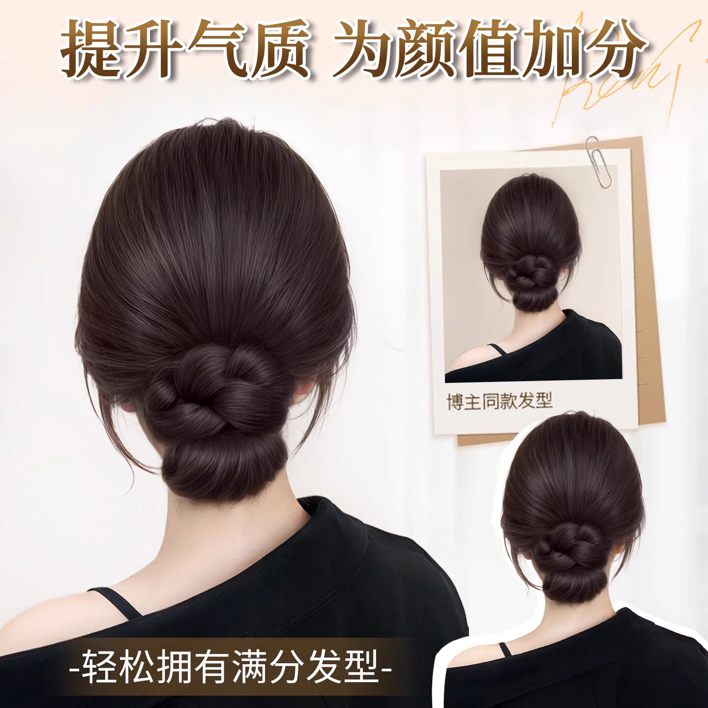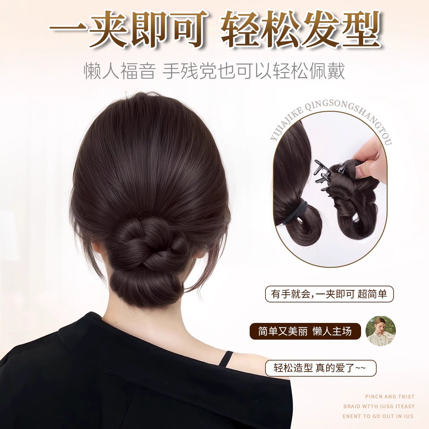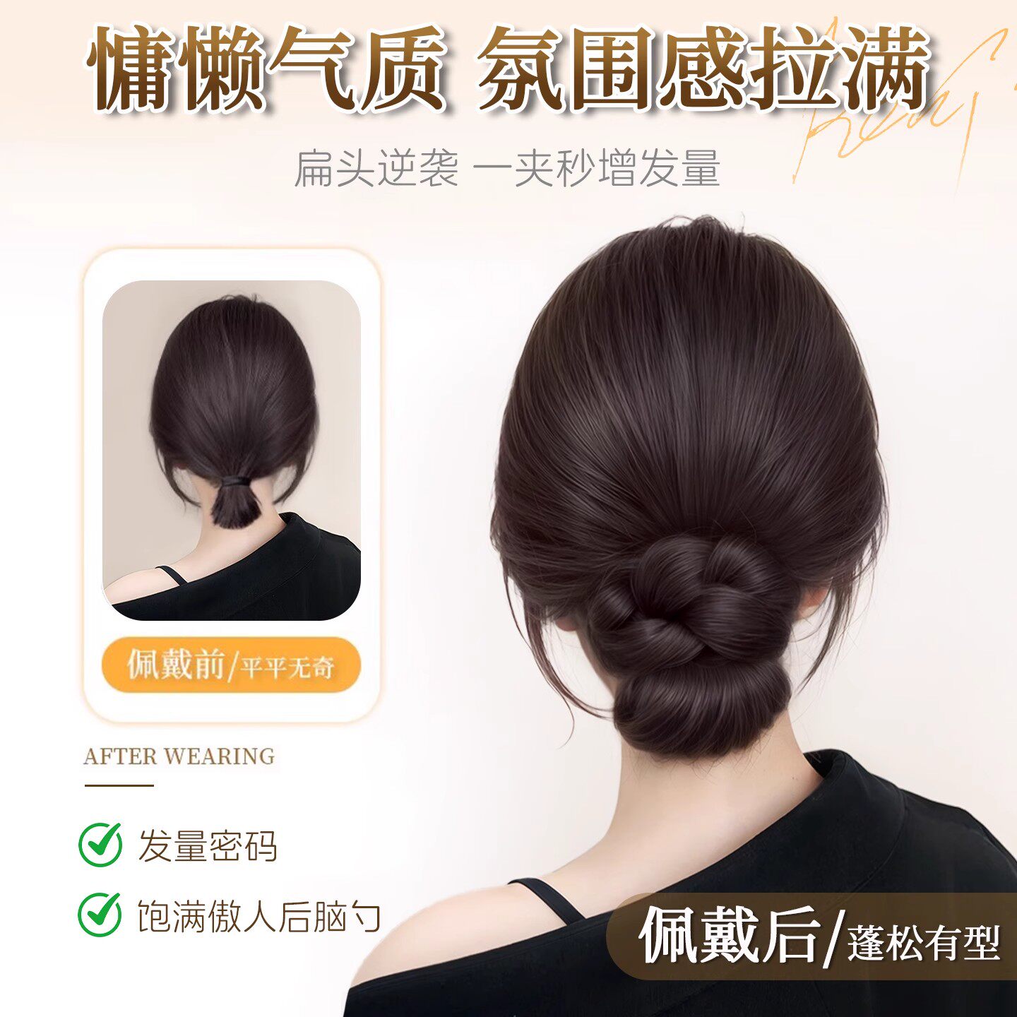 低扎丸子头假发鸡毛头抓夹盘发发包慵懒感造型头饰自然蓬松后脑勺