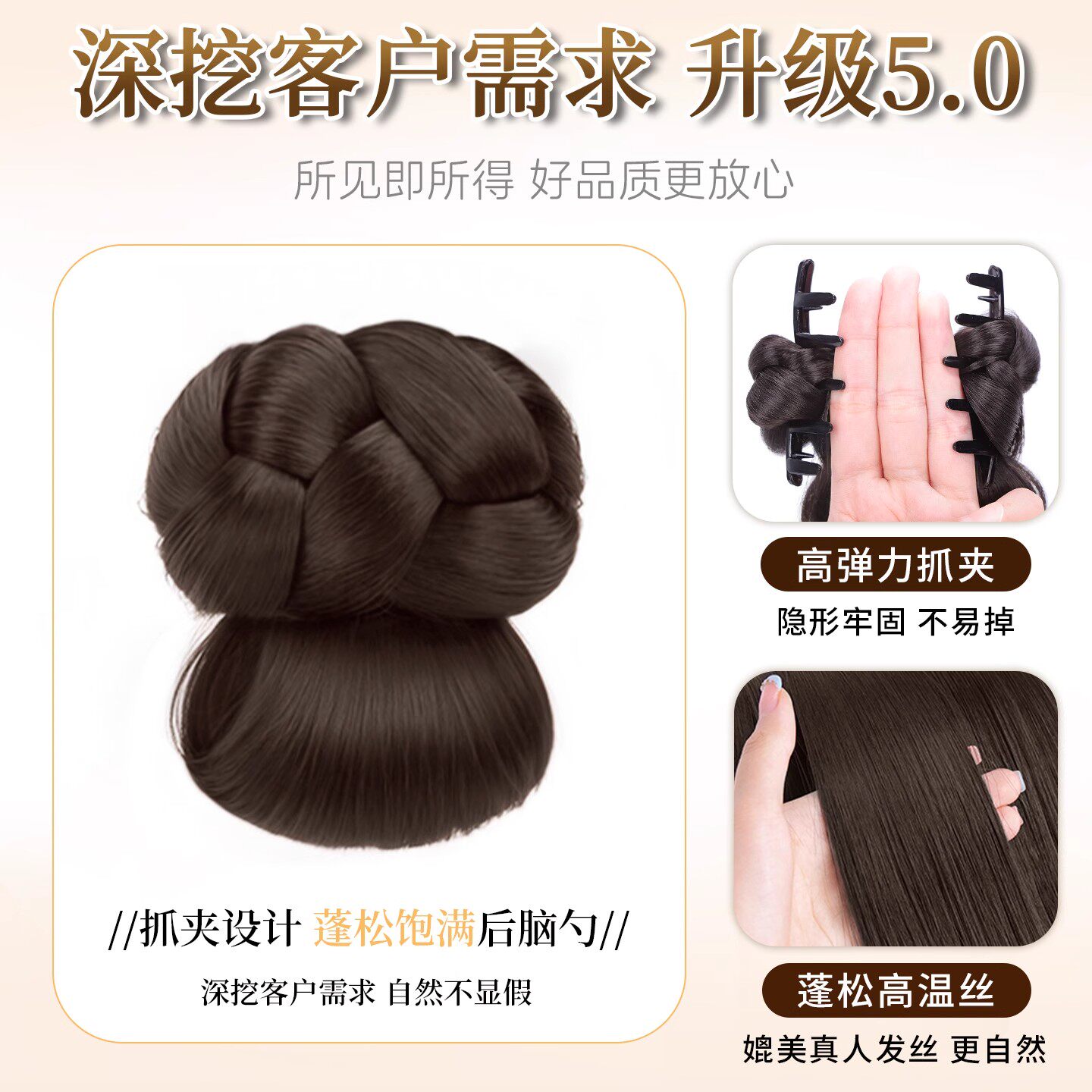 低扎丸子头假发女抓夹花苞头自然蓬松纹理感盘发神器后脑勺假发包