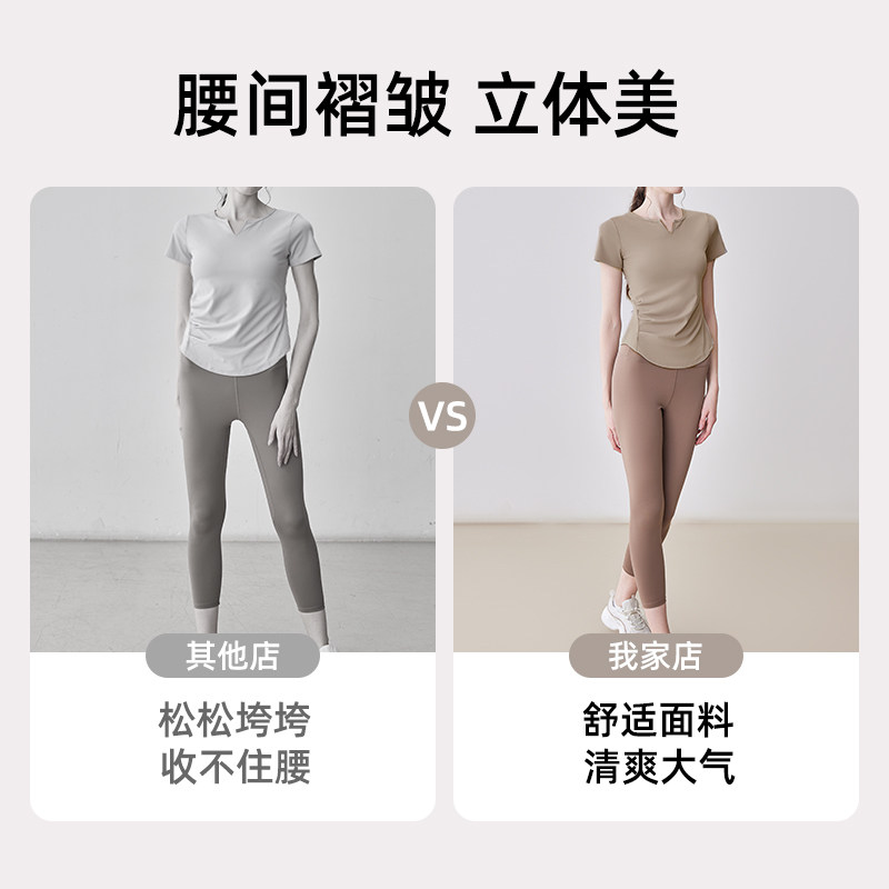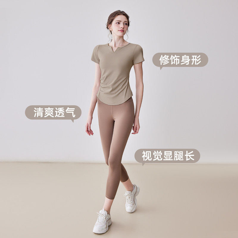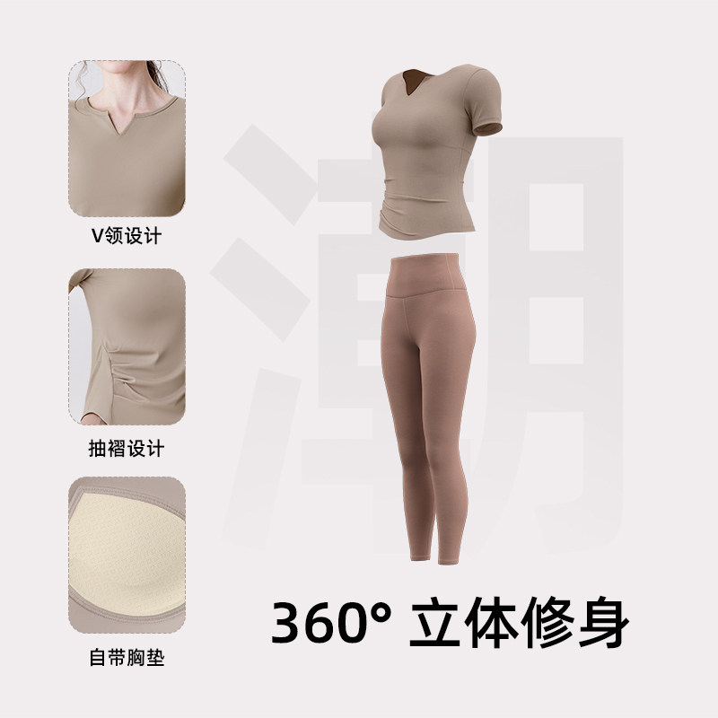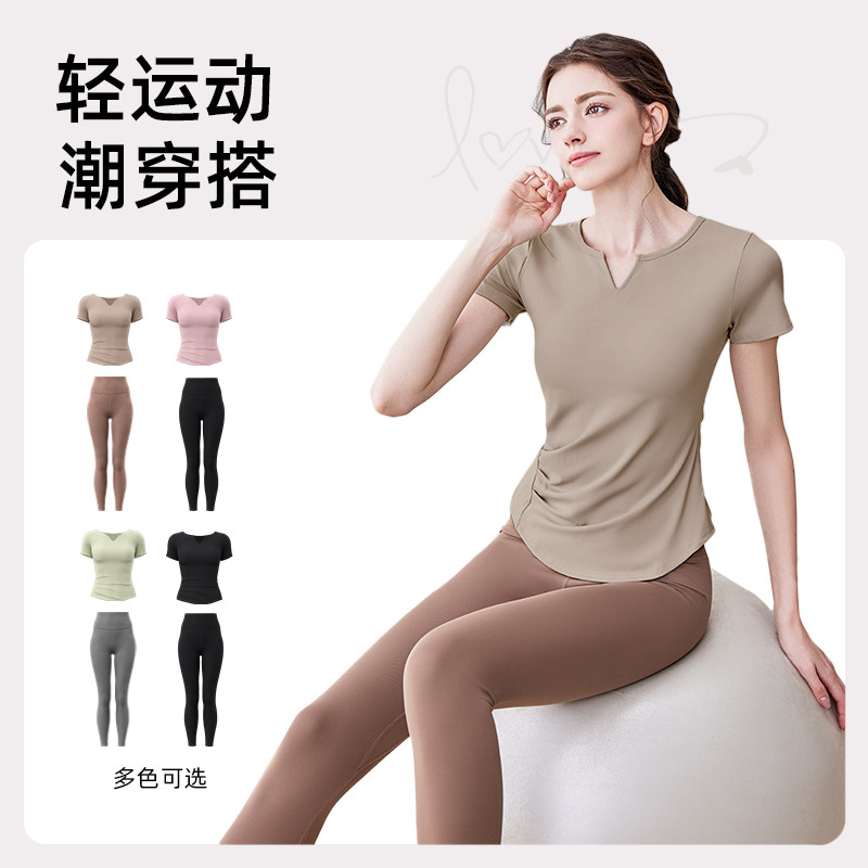 带胸垫瑜伽服女普拉提训练健身上衣2025新款运动跑步套装短袖T恤