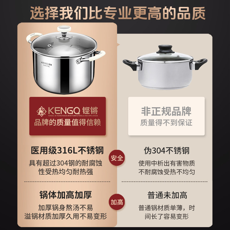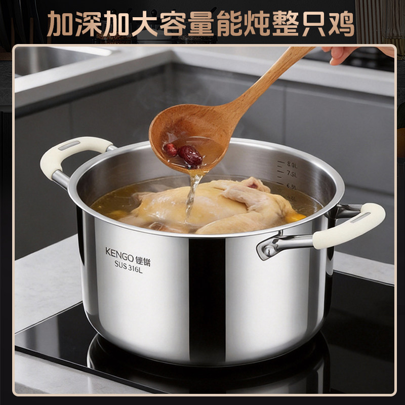 铿锵家用双耳汤锅316不锈钢加厚煮粥锅炖锅燃气电磁炉大容量炖锅