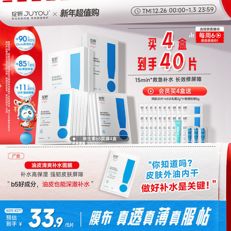 b5绽妍面膜补水精华贴 敏感保湿舒缓 混油皮修护熬夜 护肤品官方