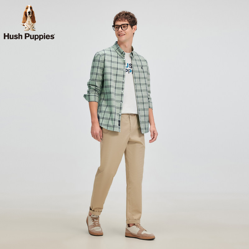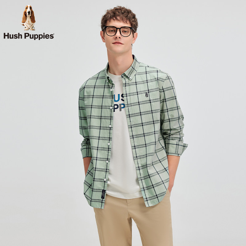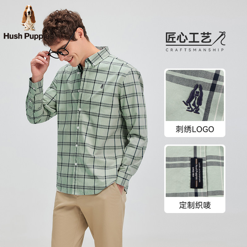【全棉斜纹布】暇步士男装2026年春棉感透气经典简约格纹长袖衬衫