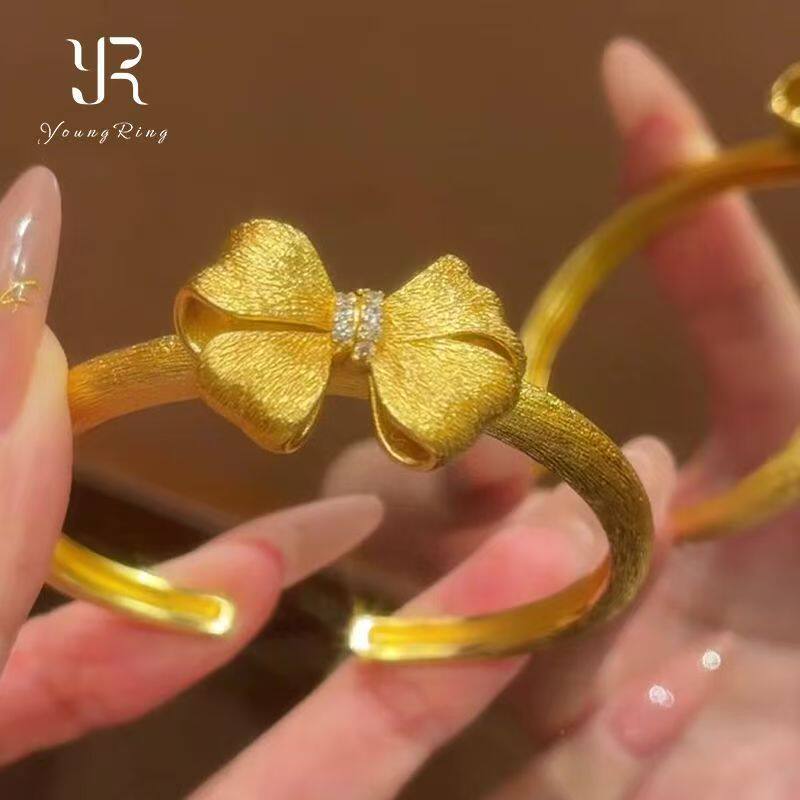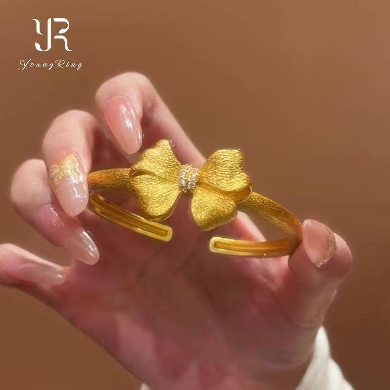 新中式金色拉丝蝴蝶结手镯女千金感精致气质秋冬百搭手饰