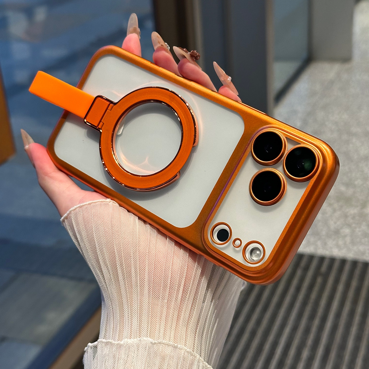 新款磁吸挂绳支架适用苹果17promax磨砂电镀0手机壳iPhone16pro磁吸支架15自带镜头膜14/13保护套12Promax硬