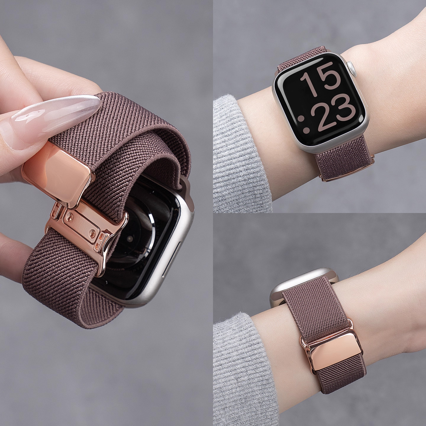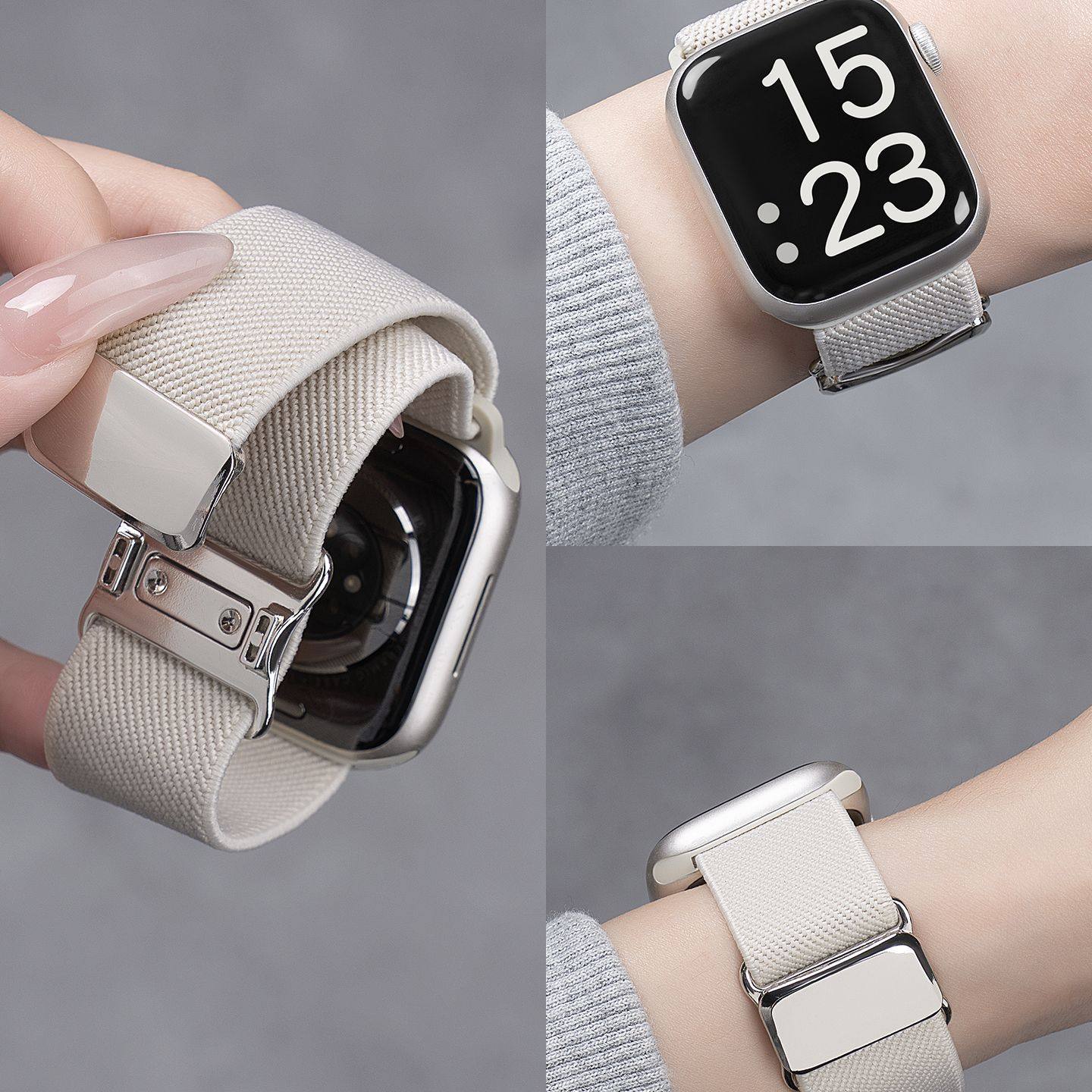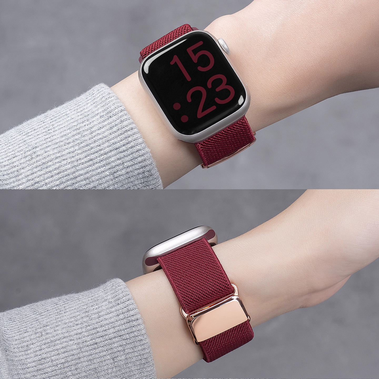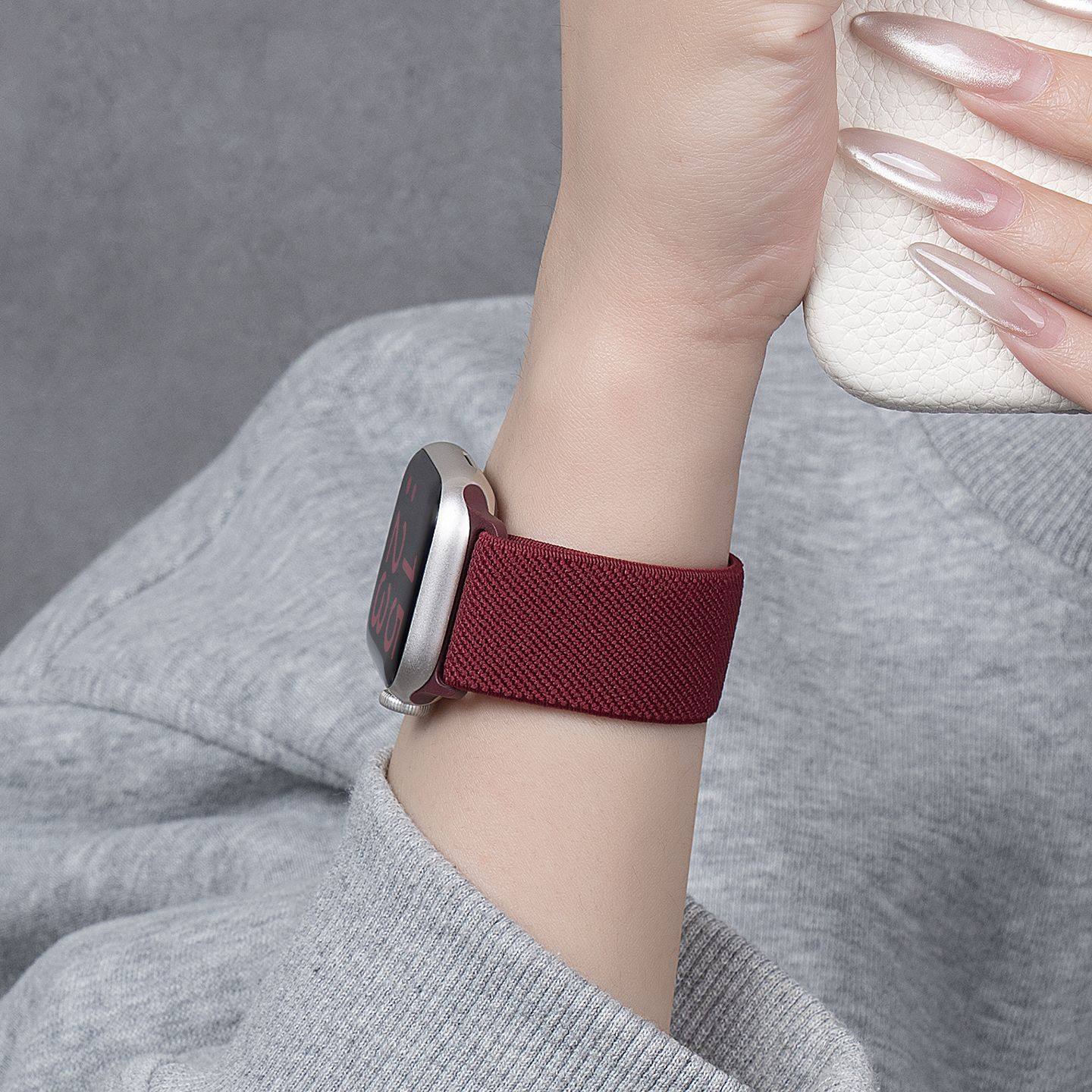 适用苹果S11手表iwatch9表带applewatch8平纹弹力尼龙编织S10新款磁吸7/6/5/4智能运动配件硅胶ultra新年酒红