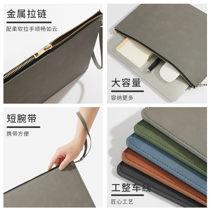 A4皮质文件袋档案袋文件包A5拉链加厚防水资料袋按扣商务公文袋办公合同票据收纳手提便携大容量定制可印logo